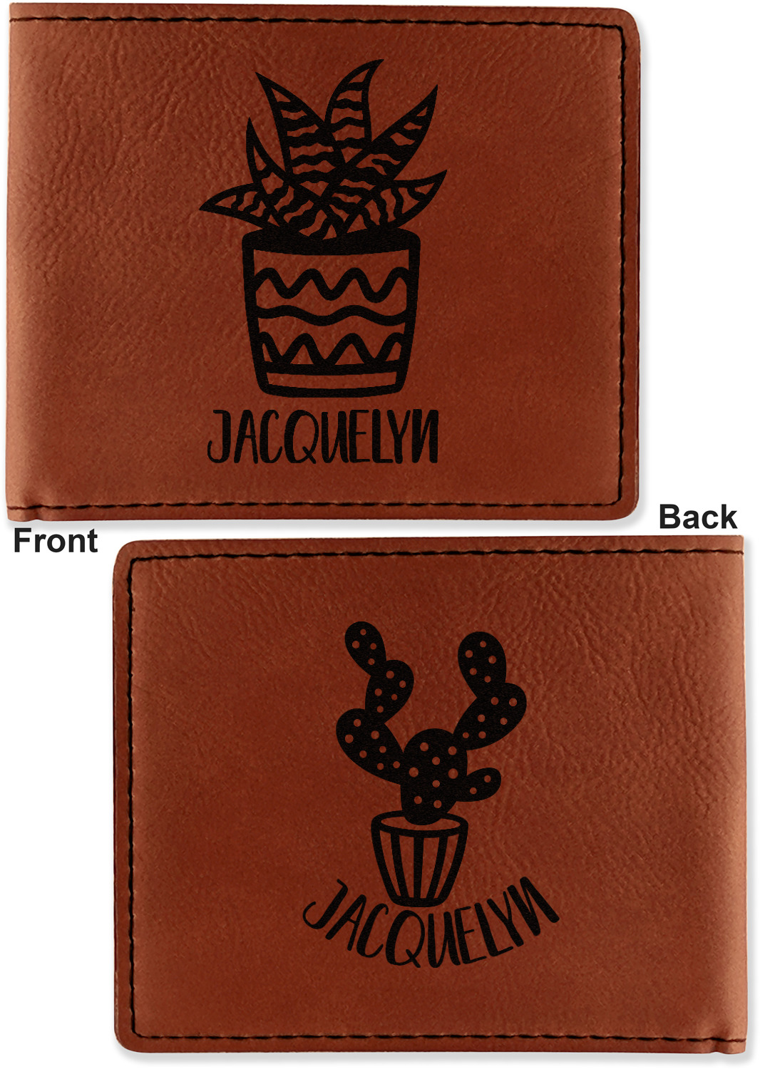 Your bifold wallet will be personalized by laser engraving, which will be a black color on the wallet. Choose a graphic, text, or monogram to personalize your wallet. There are thousands of choices in our design center.
