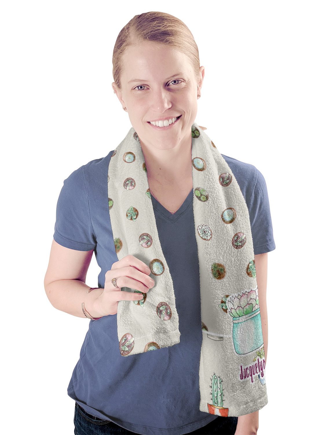 These towels are 44" x 12", which are the perfect size for hanging around your neck on the treadmill or wiping your brow after a hard workout. They are full-print towels with your very own design printed right on the front! They are perfect for soaking up moisture and are quite soft against your skin.