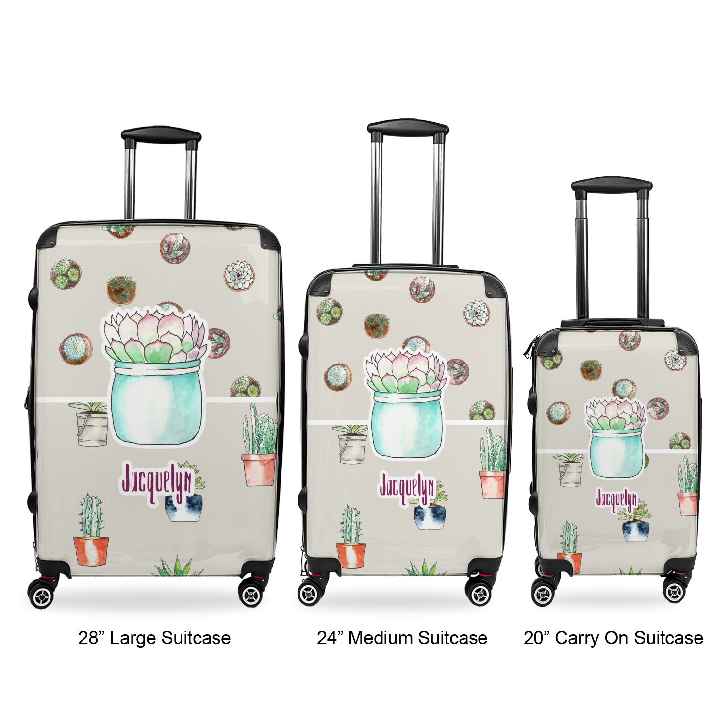 These personalized suitcases are just the thing for a travel junkie. They are hard shell suitcases that come in 3 different sizes: