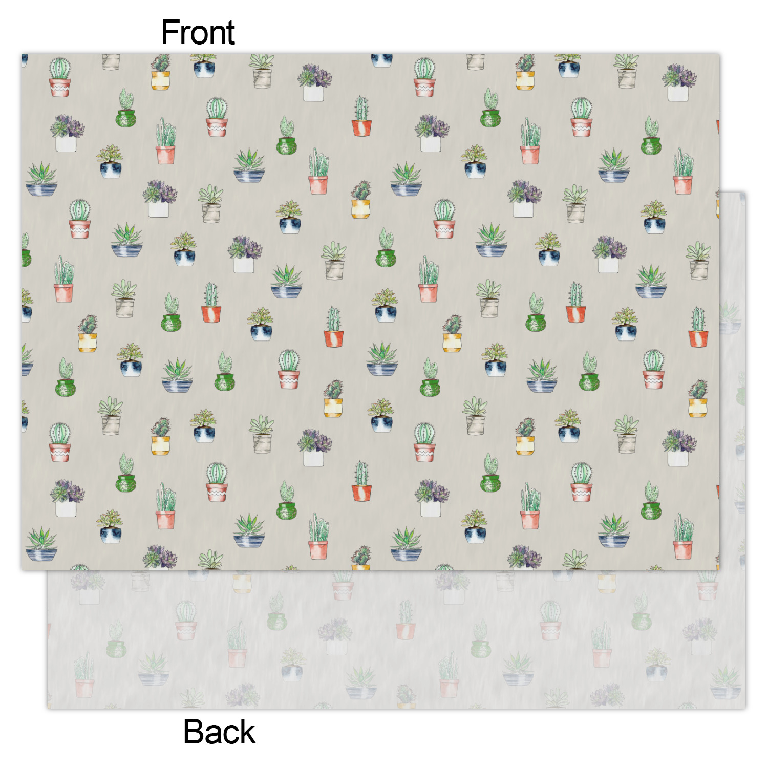 This design has a neutral tan background in order to let the cacti really stand out. You will find two different patterns of potted cacti and potted succulents from a bird's-eye view. The succulents consist of cacti, aloe, and your typical succulent plants. A fun plum and mint colors are used as accent colors throughout the design.