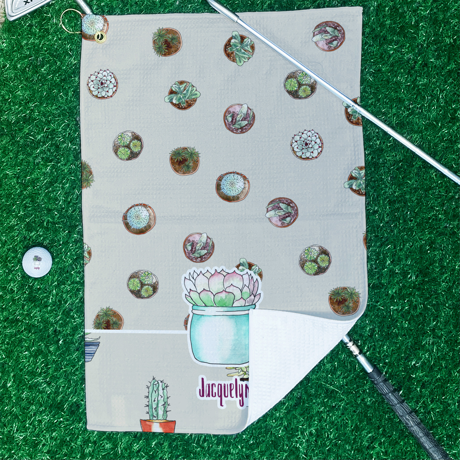 Measuring approximately 16in wide and 24in tall these towels are the perfect size for your golf bag or on your cart. The waffle weave texture makes a great texture for cleaning clubs, balls and anything else you need to clean during your golf game.
