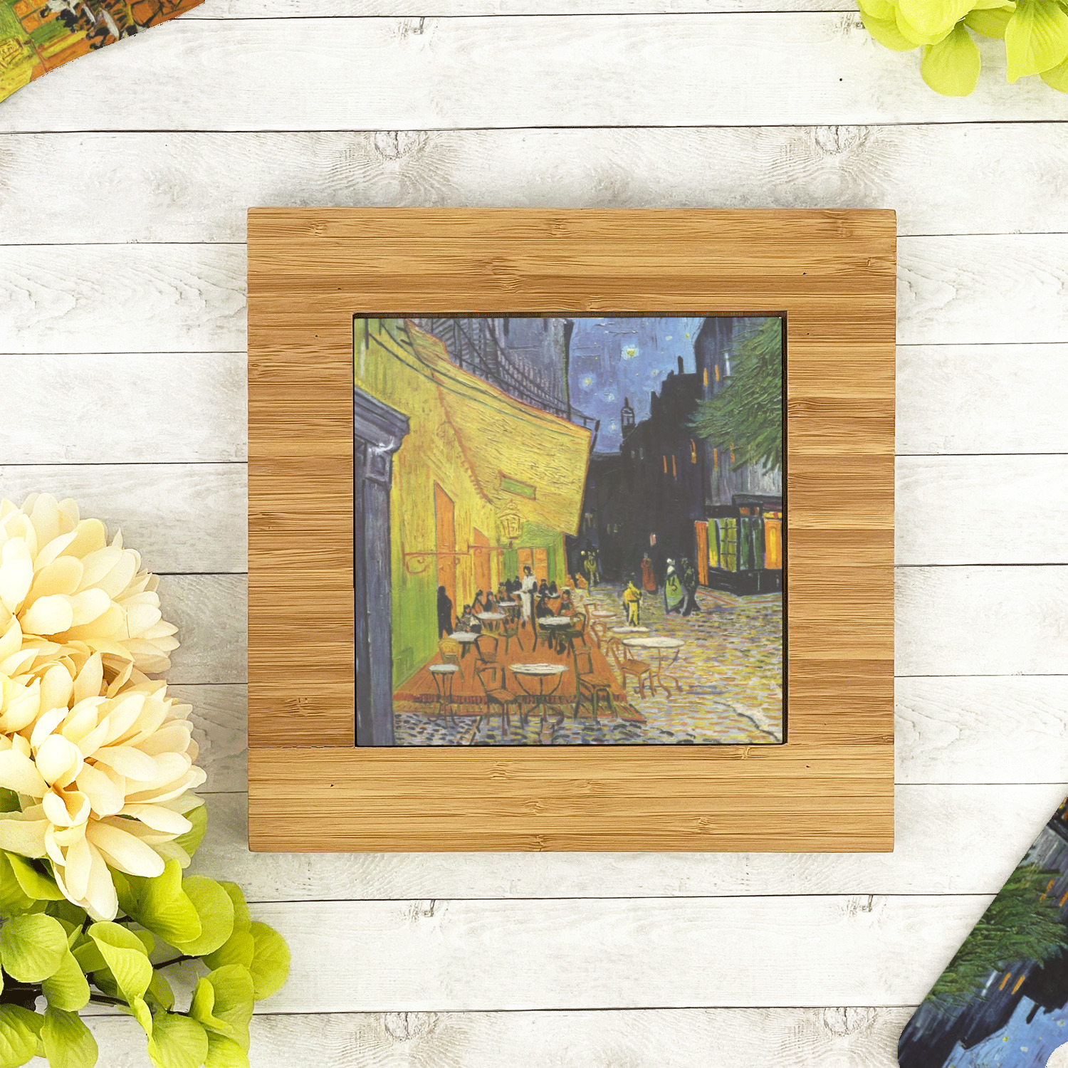 The center is highlighted by a 6in ceramic tile that is printed with the design of your choice. The tile sits slightly higher than the bamboo to ensure the majority of the heat stays on the tile not on the bamboo.