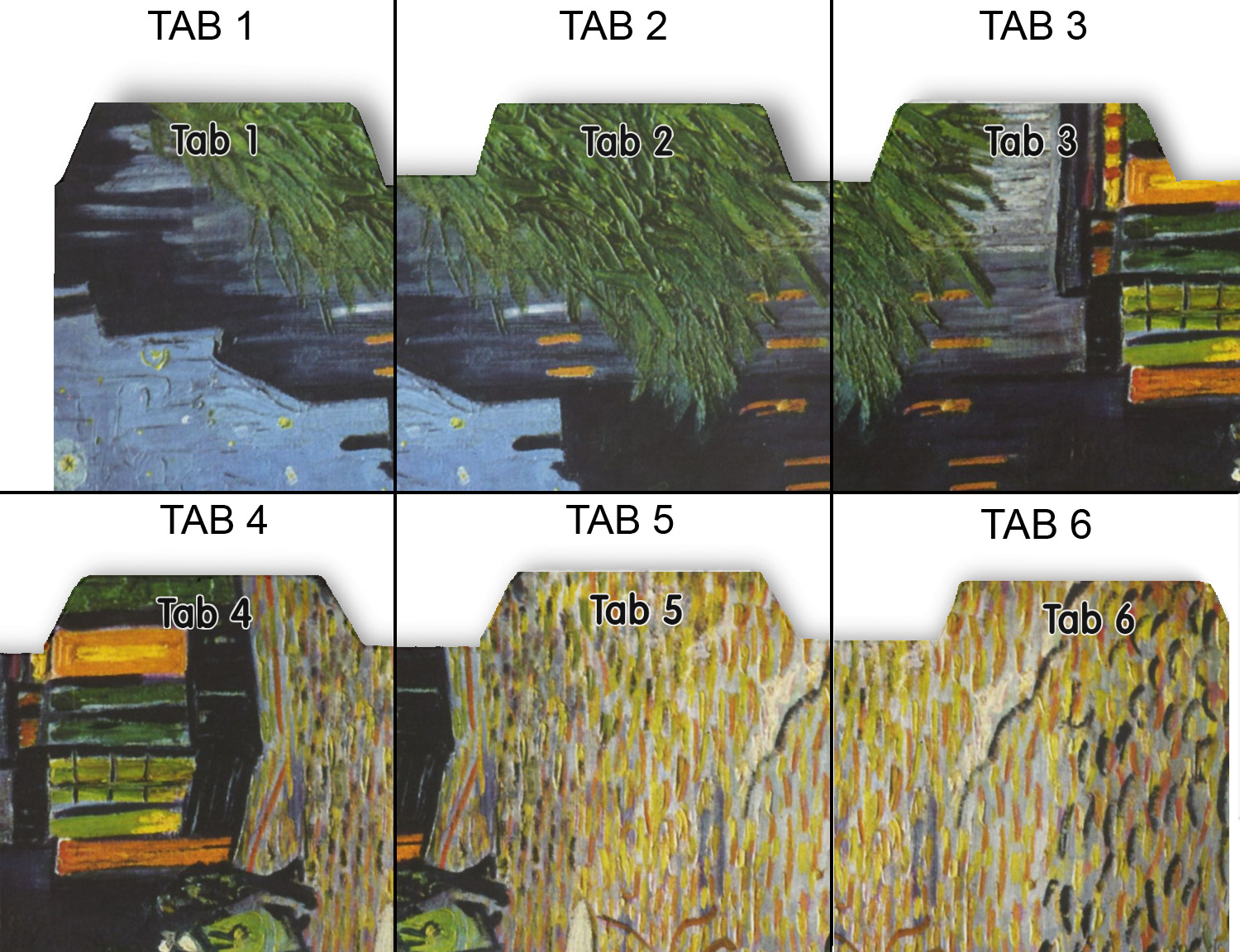 Whether you use binders at school or at work, we have designs to suit all of them. Available in 5 or 6 tab sets, you are sure to find a set to suit your needs. The back of each one is white and can be used to take notes, write vital information on, etc.
