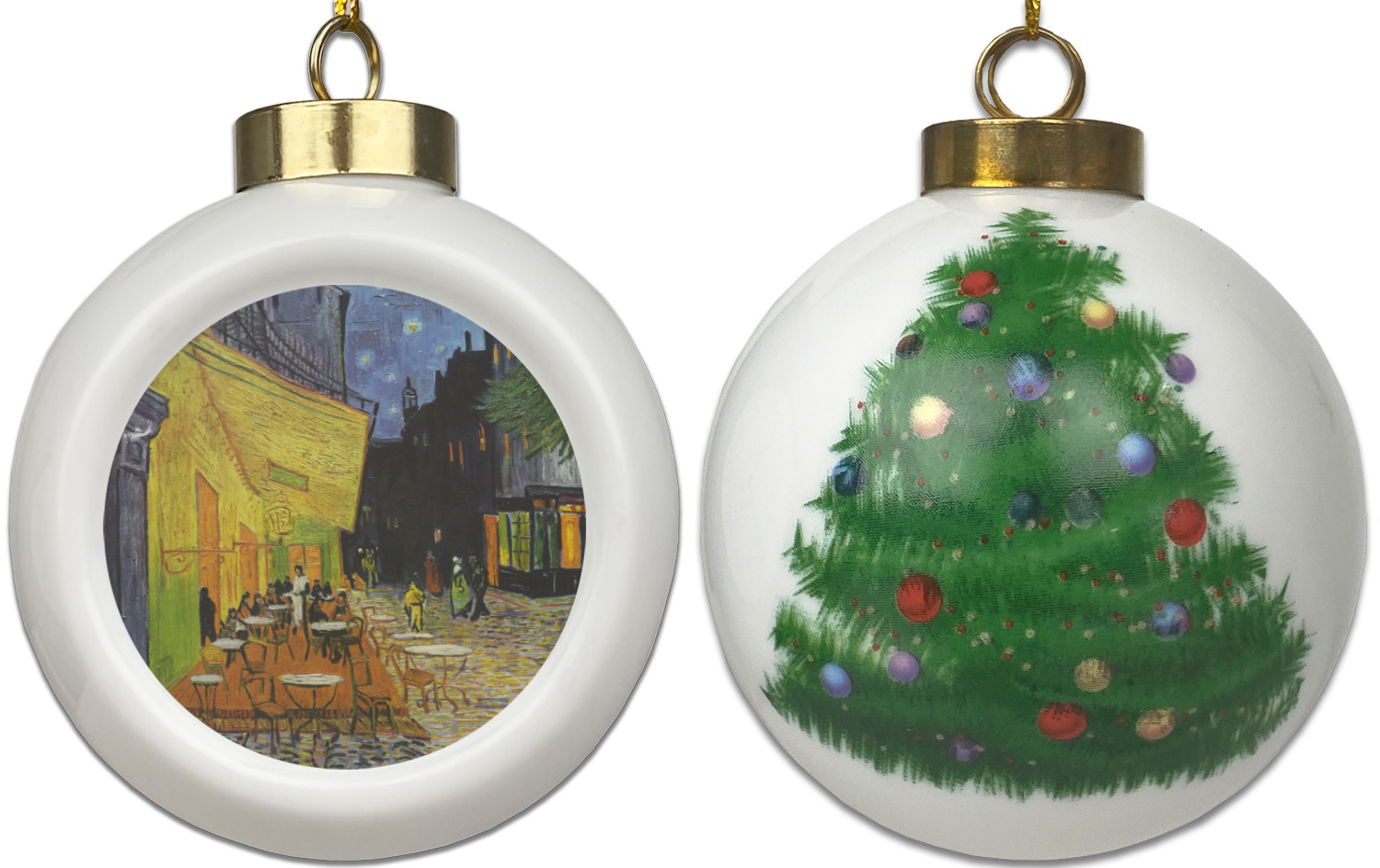 Our Christmas ornaments are a unique ceramic ball shape with a twist as it has a flat face to display your custom design! Select from one of our two design types - Christmas Tree or Poinsettia Garland - to adorn the curved back of your personal design. Each ornament measures 3H x 2.5W x 2D accompanied with a gold string accent for finishing touches to hang on your beautiful Christmas tree!