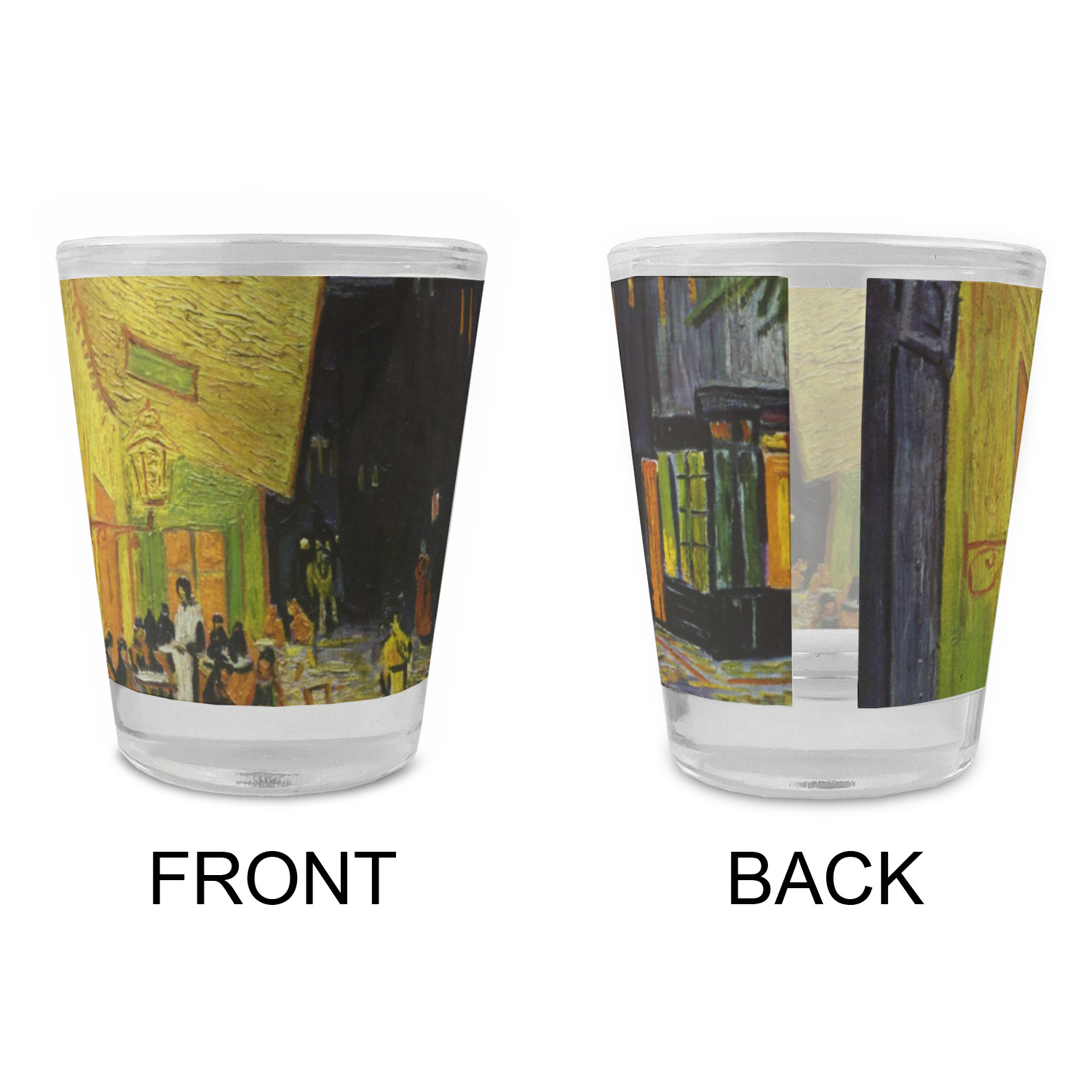 Made with frosted glass, these shot glasses are printed in full color with the design of your choice. They are a standard 1.5oz shot glass and are 2.4" tall. The print is wrapped around the shot glass in a full wrap and boldly displays your customization.