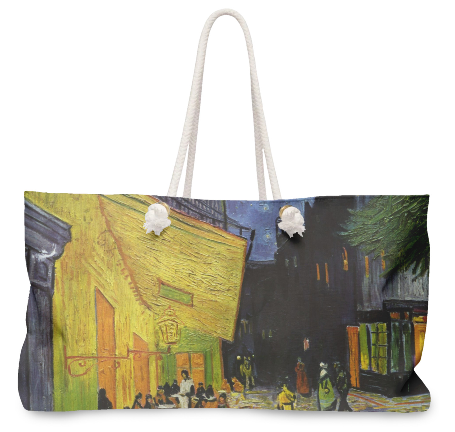 These weekender totes can be customized front and back. The totes are full all over print - so the choice of how background are endless - from beautiful floral or leaf patterns to geometrics or some classic Van Gogh artwork - the possibilities are endless. The totes can also be decorated with photos and logos.