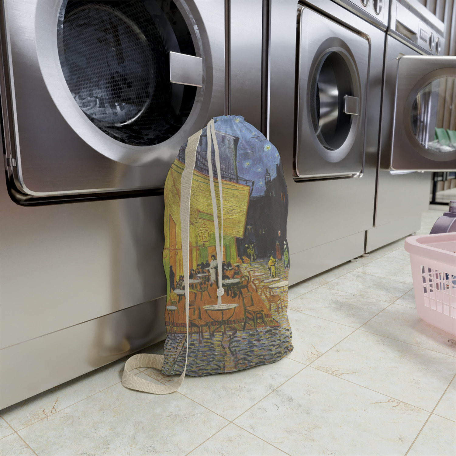 Carry your laundry in style with these customized laundry bags. Available in two sizes, featuring a natural colored woven strap and a cinch cord, these bags hold a lot of clothes or anything else you want to fit in them.