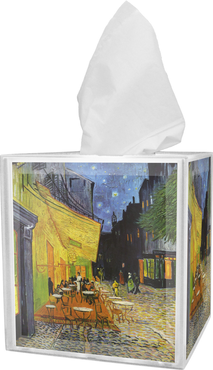 These tissue holders are built from durable acrylic and display your unique personalization on fine-quality vinyl inserts placed within the four sides and top. The box features two pieces, allowing you to easily switch out tissue boxes. On the sides, youll find ridges that ensure the top and base fit securely in place. The bottom of these tissue box holders has four, rubber, non-slip pads to prevent the box from scuffing any surface you decide to display it on. Each box can fit a standard 5 by 5-inch box of tissues.