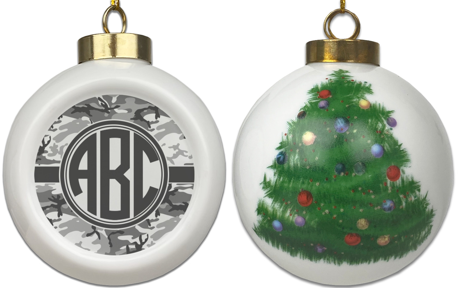 Our Christmas ornaments are a unique ceramic ball shape with a twist as it has a flat face to display your custom design! Select from one of our two design types - Christmas Tree or Poinsettia Garland - to adorn the curved back of your personal design. Each ornament measures 3H x 2.5W x 2D accompanied with a gold string accent for finishing touches to hang on your beautiful Christmas tree!