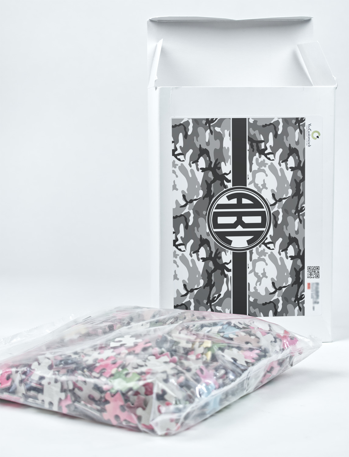 You can also upload your logo or art that you or your kids drew. To create more challenging jigsaw puzzles, you can create a pattern from with your logo or artwork. You can also add other elements such as text or personalization.