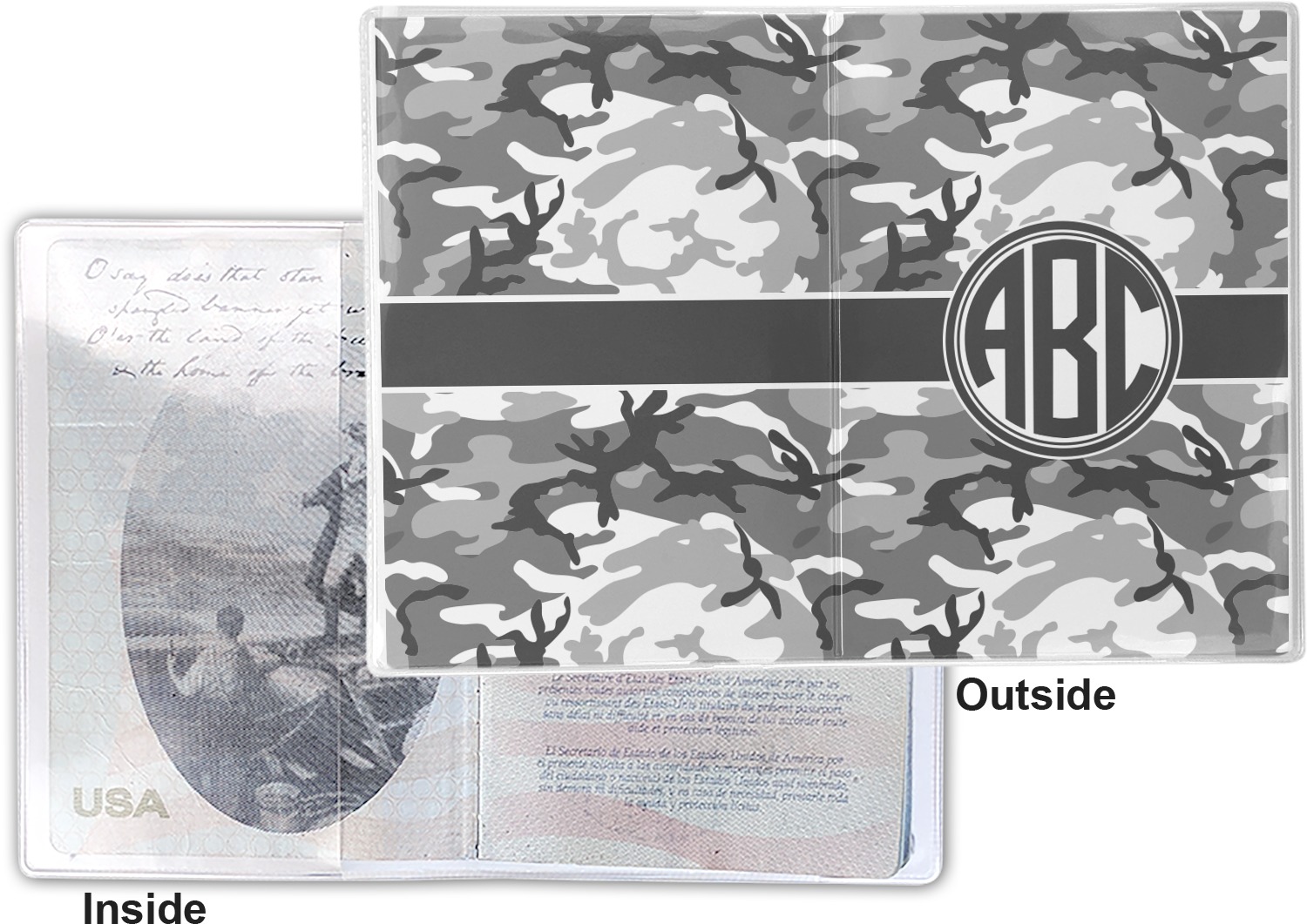 This cover is made of a sturdy clear vinyl with a personalized vinyl insert inside. There is a large and a small pocket on either side to hold the covers of your passport easily and firmly. The passport holder is approximately 7.5" x 5.25", the perfect size to snugly fit your passport. This slim cover is the perfect way to protect your passport without being one more bulky item you have to carry.