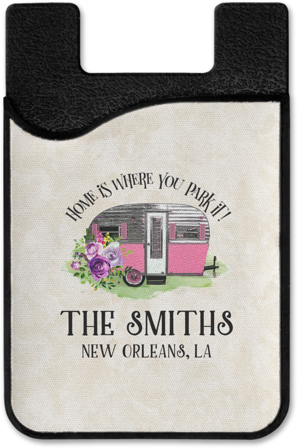 This fun design is absolutely stunning. The background is a subtle tan watercolor texture. The main graphic is an adorable pink trailer camper with sweet flowers all around it. The phrase going above it says "Home is where you park it!" You can easily personalize the text to say the place and date of a specific camping trip you always want to remember.