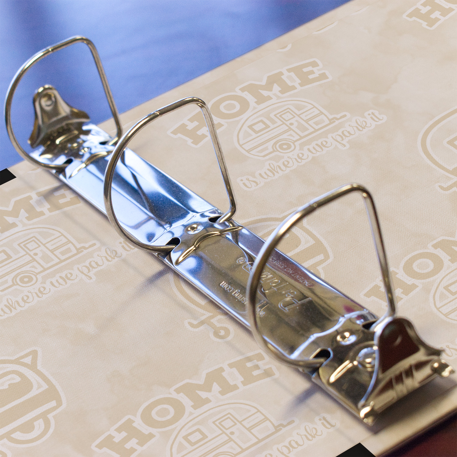 The outside is printed in 3 sections - front cover, spine and back cover - while the inside is printed in a full single print of your choice. The inside boasts a high quality nickel plated binder mechanism with a trigger opening function and is secured to the cardboard binder with posts and screws.
