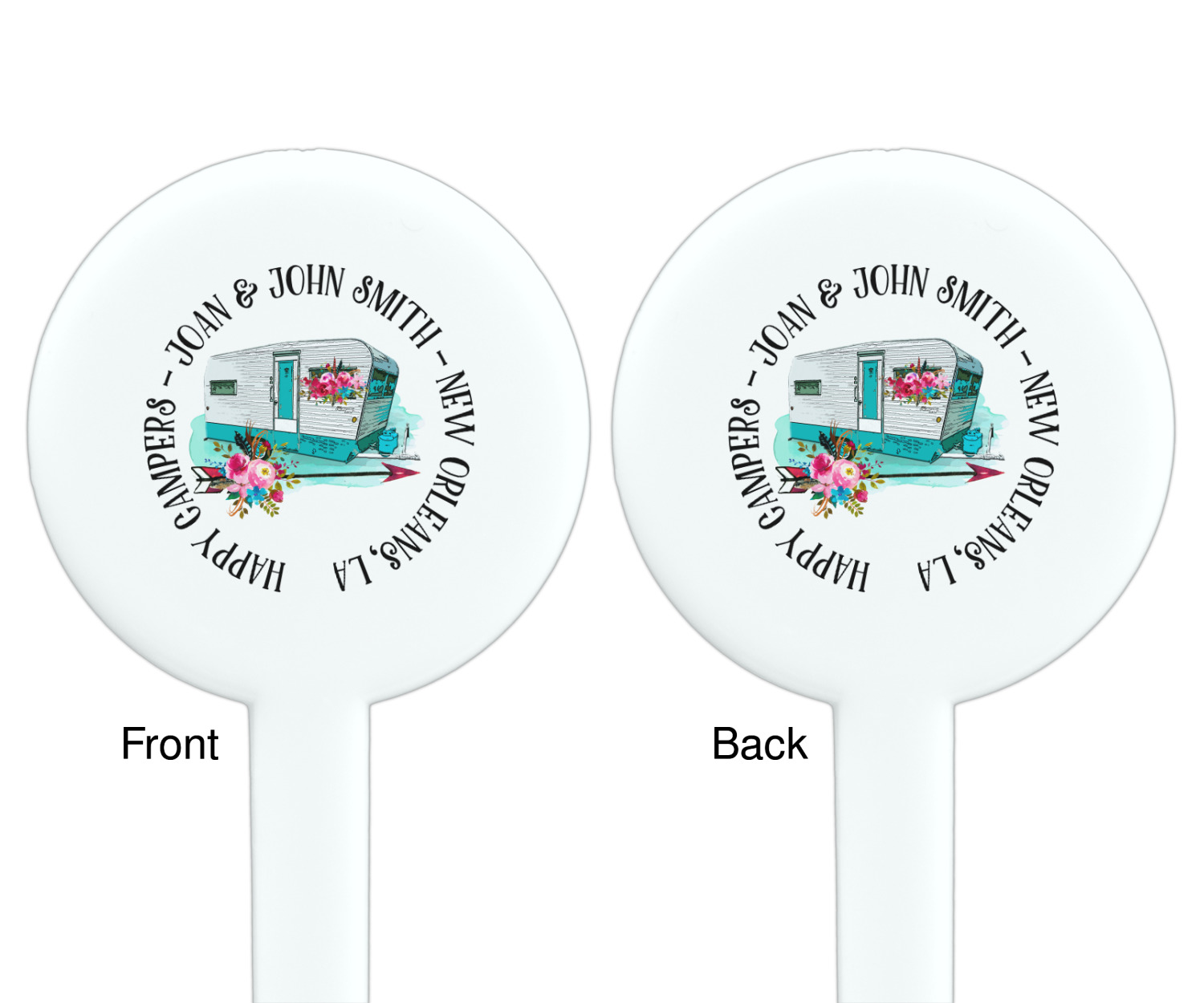 This fun design is absolutely stunning. The background is a subtle tan watercolor texture. The main graphic is an adorable pink trailer camper with sweet flowers all around it. The phrase going above it says "Home is where you park it!" You can easily personalize the text to say the place and date of a specific camping trip you always want to remember.