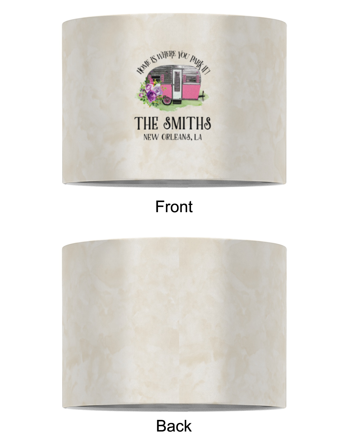 Our customized lamp shades also come in 3 different sizes: 8", 12" and 16", measuring at 8" in diameter by 6" tall, 12" in diameter by 8" tall, and 16" in diameter by 10" tall, respectively.