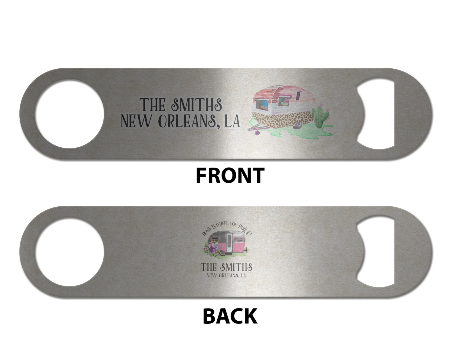 Stop struggling with the caps or your bottled beverages by purchasing one of our personalized bottle openers! These wrench-like custom bar blades are built to last. Customize one for your home's bar, or as a practical gift for a loved one!