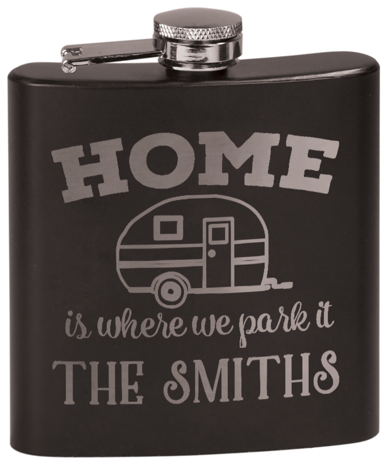 You'll always look classy when drinking when you use our black flask! These personalized flasks have a sleek, black look that will look lovely alongside your other bar-ware and accessories! After you've customized one for yourself, craft one for a friend or loved one!