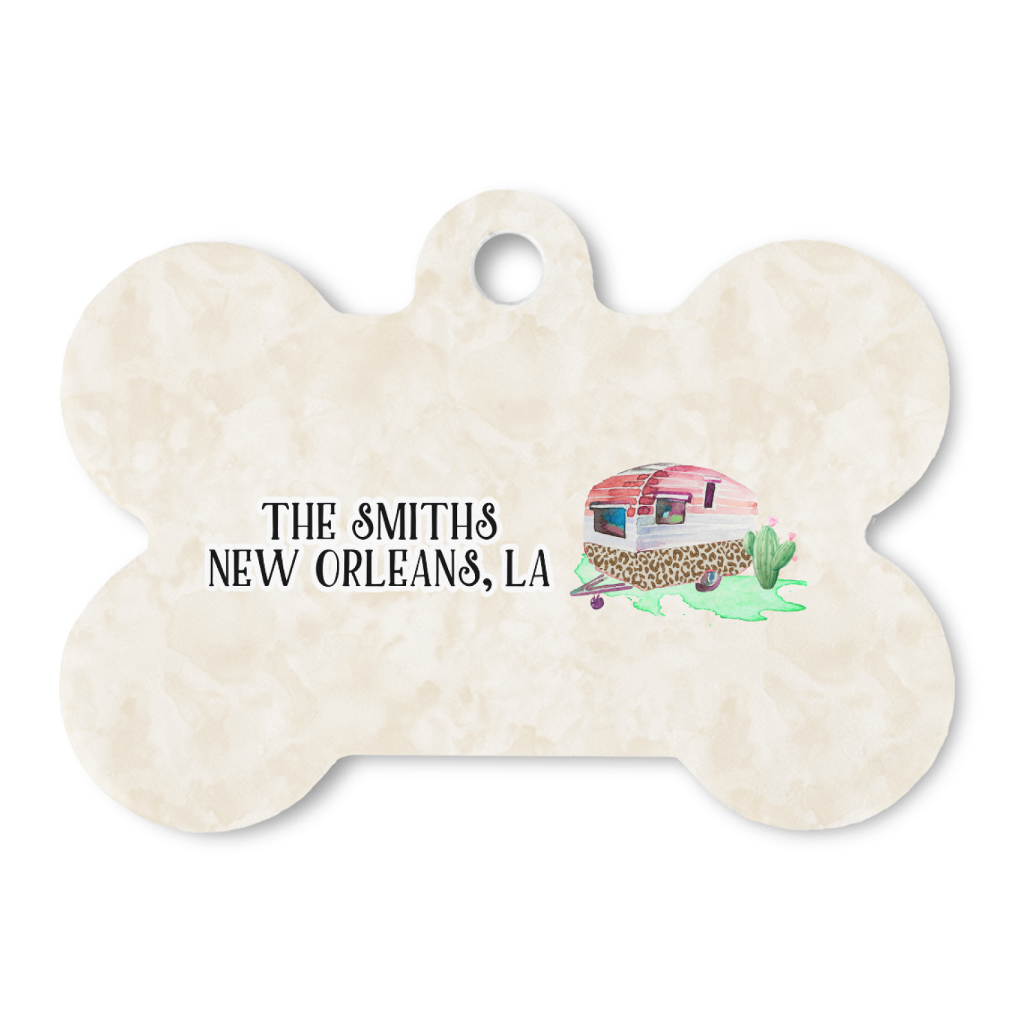 The large bone shaped dog tag measures 2" wide X 1 " tall.