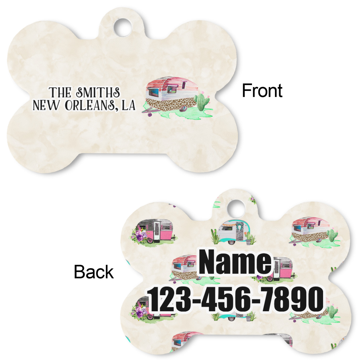 Shaped like a bone and made from aluminum, these tags are available in 2 different sizes.
