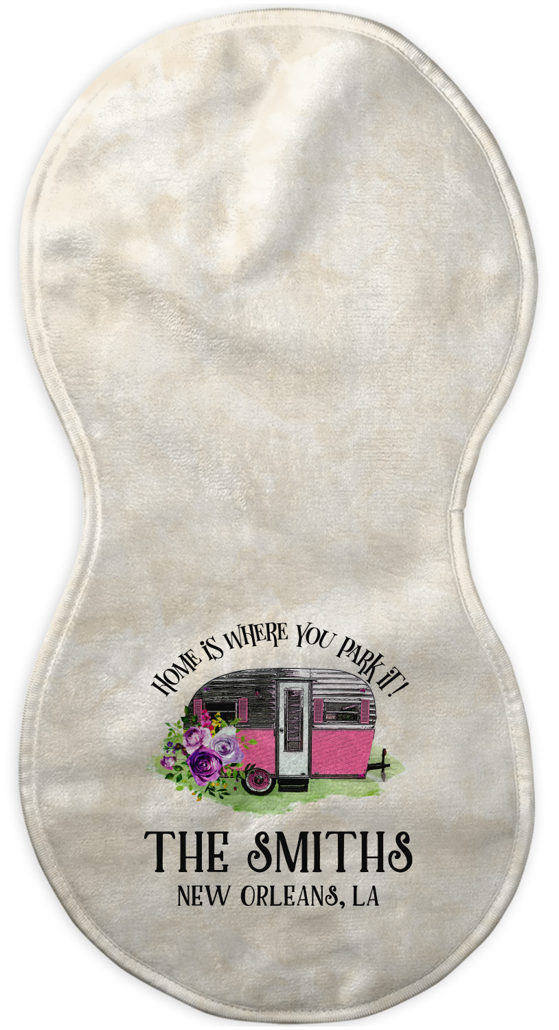 Choose your baby burp cloth from our two styles - Fleece (rectangular) or Microfiber Velour (peanut shape). The lightweight and absorbent design makes each burp cloth multipurpose; use them as a burp pad, a lap pad, a changing table, or a spare cloth to clean up any baby mess. Your customization is displayed across the front with baby-safe ink to ensure extra comfort with a white backing.
