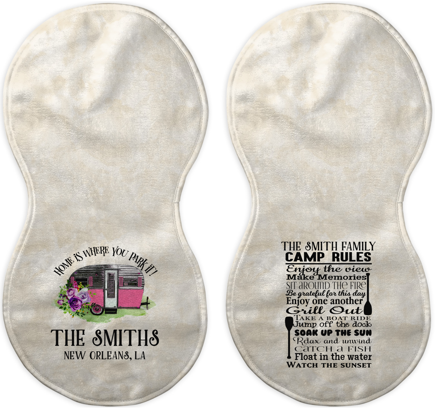 Choose your baby burp cloth from our two styles - Fleece (rectangular) or Microfiber Velour (peanut shape). The lightweight and absorbent design makes each burp cloth multipurpose; use them as a burp pad, a lap pad, a changing table, or a spare cloth to clean up any baby mess. Your customization is displayed across the front with baby-safe ink to ensure extra comfort with a white backing.