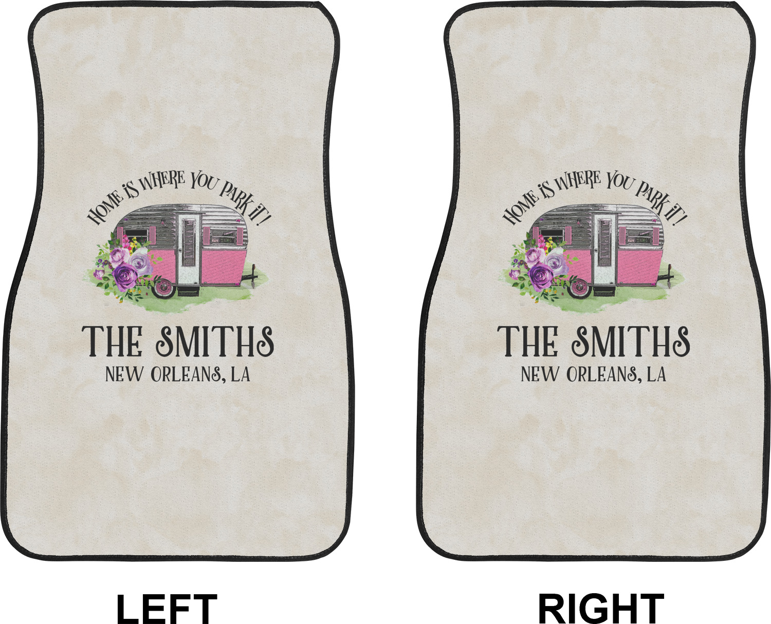 We craft our auto floor mats mats from polyester, apply a black finish to the edges, and lined at the bottom to prevent slippage. These mats protect your floors from grass, mud, and any accidental spills. We display your personalized design on the front face of each mat. The sizes of these car floor liners are standardized to provide a versatile fit for all vehicles. The front rows car mats measure at 17 by 26.5 inches, while the back rows measure at 17 by 13 inches. We sell three packages of car floor mats. You can purchase a pair of front row car mats, a pair of back row car mats, or a set of front row and back row car mats. To make an informed purchase, we recommend measuring the surface area of your car floors.