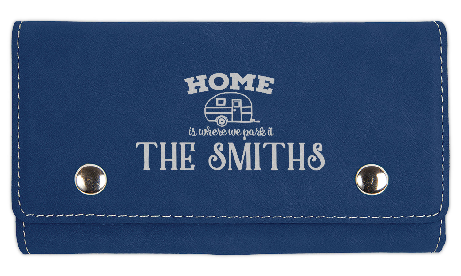 This fun design is absolutely stunning. The background is a subtle tan watercolor texture. The main graphic is an adorable pink trailer camper with sweet flowers all around it. The phrase going above it says "Home is where you park it!" You can easily personalize the text to say the place and date of a specific camping trip you always want to remember.