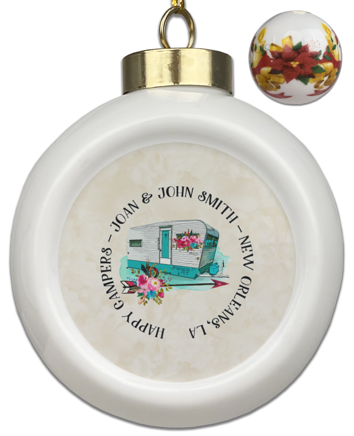 Our Christmas ornaments are a unique ceramic ball shape with a twist as it has a flat face to display your custom design! Select from one of our two design types - Christmas Tree or Poinsettia Garland - to adorn the curved back of your personal design. Each ornament measures 3H x 2.5W x 2D accompanied with a gold string accent for finishing touches to hang on your beautiful Christmas tree!