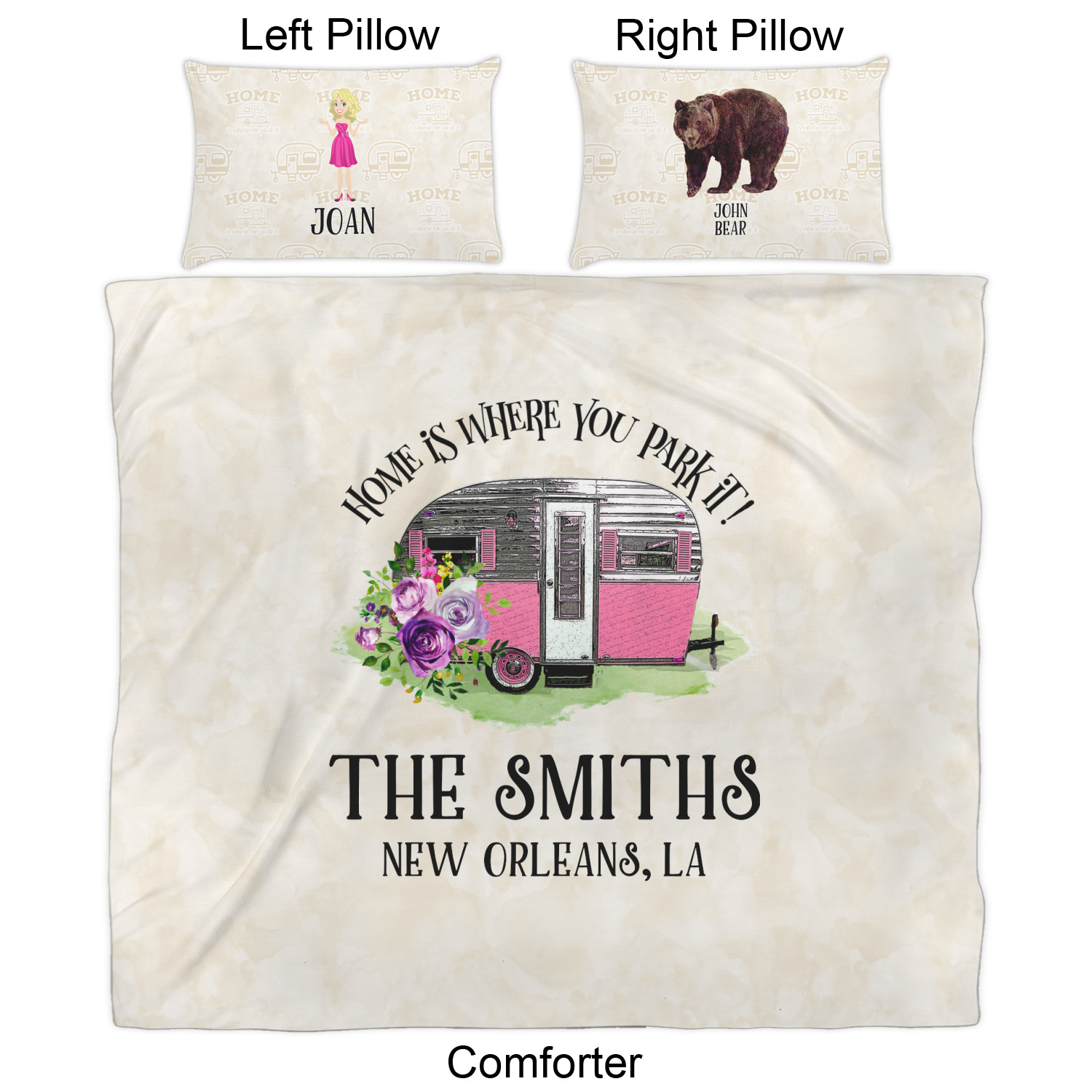 We have hundreds of different design templates for you to choose from Each design can be customized to your exact specifications. Not only can you customize the comforter, but you can also customize each pillow sham e.g. for a queen comforter set you have have Mr & Mrs pillow shams with the last name on comforter.