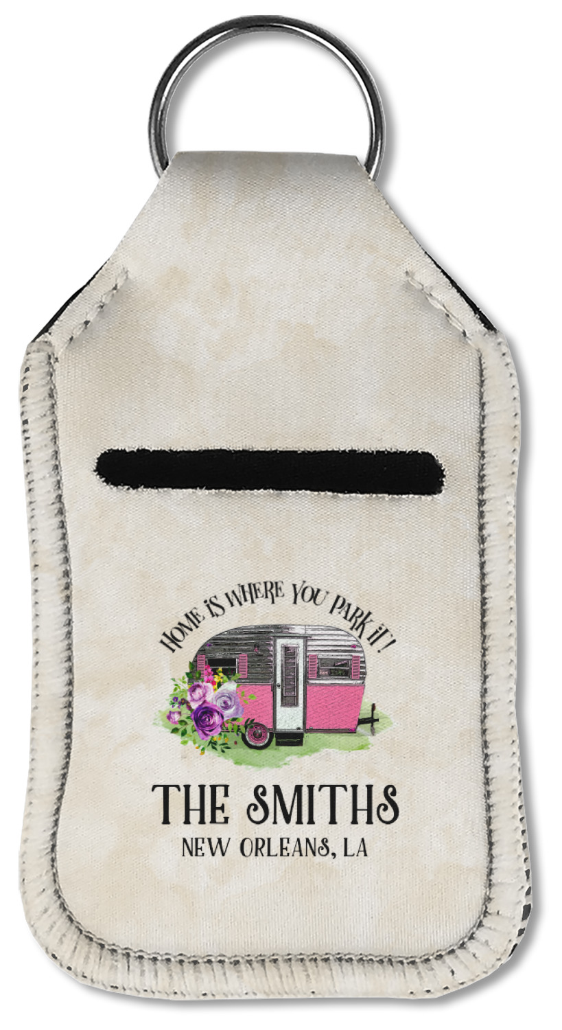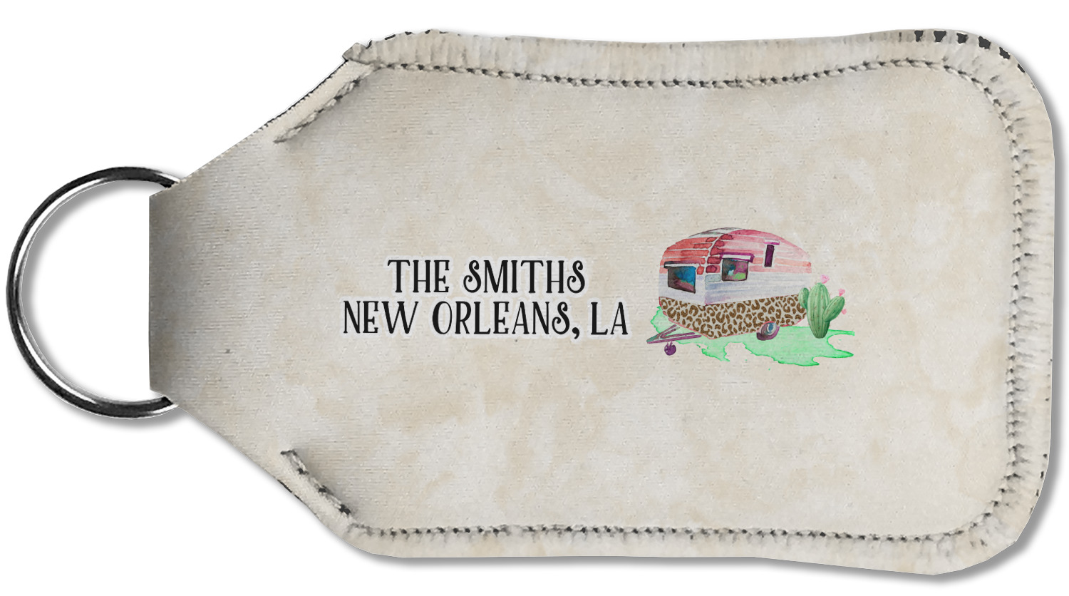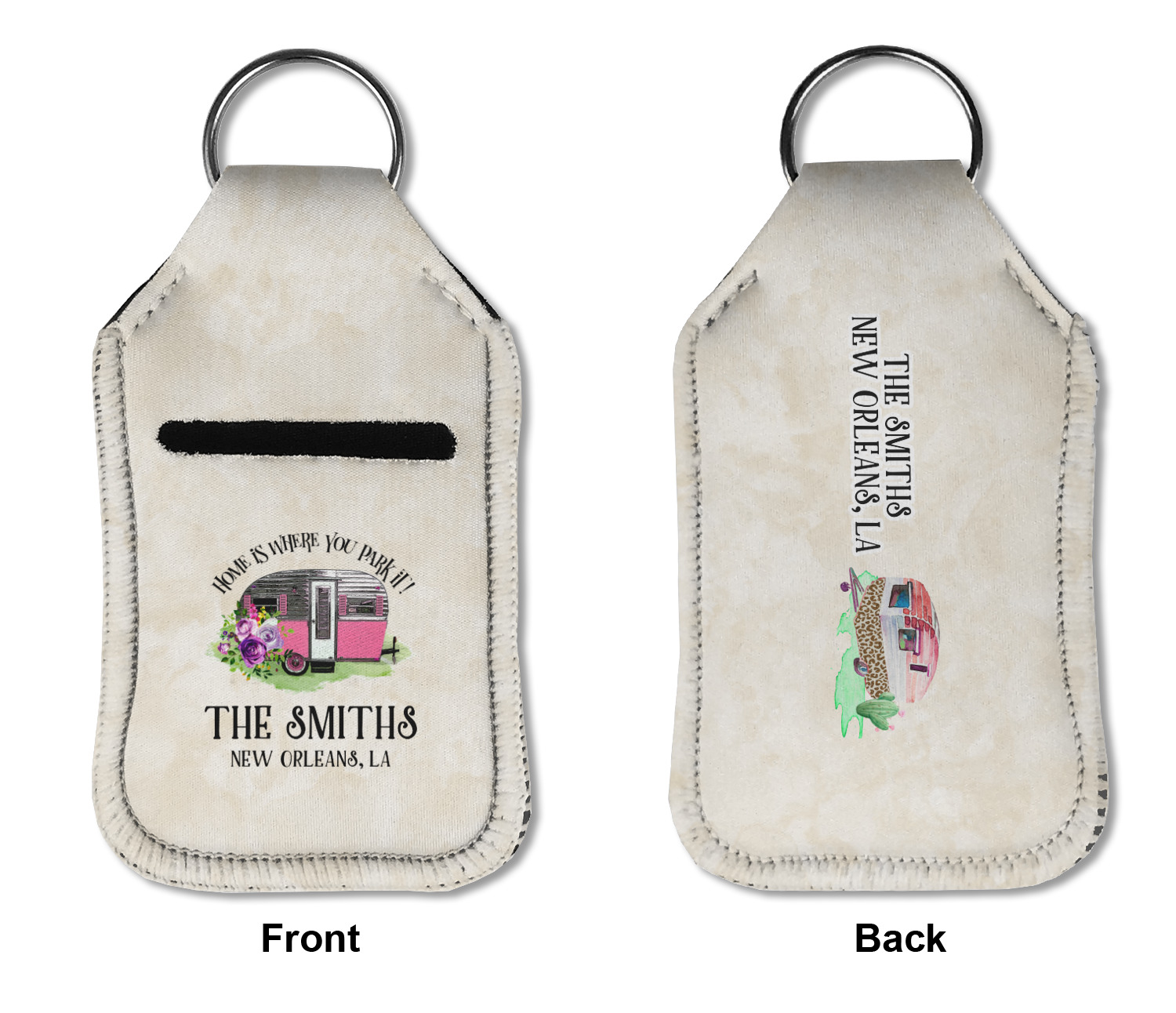 Each hand sanitizer holder comes with its own empty travel-sized, refillable hand sanitizer sure to fit snug in your customized sanitizer case! Our hand sanitizer cases are a durable, yet soft neoprene material sure to last any daily activities or travel agenda. Customize and personalize a hand sanitizer bottle holder with one of our two sizes - small (4.25" x 2.25") or large (5.5" x 2.5"). Each travel sanitizer holder comes with a keyring for attachment on bags, keys, or more!