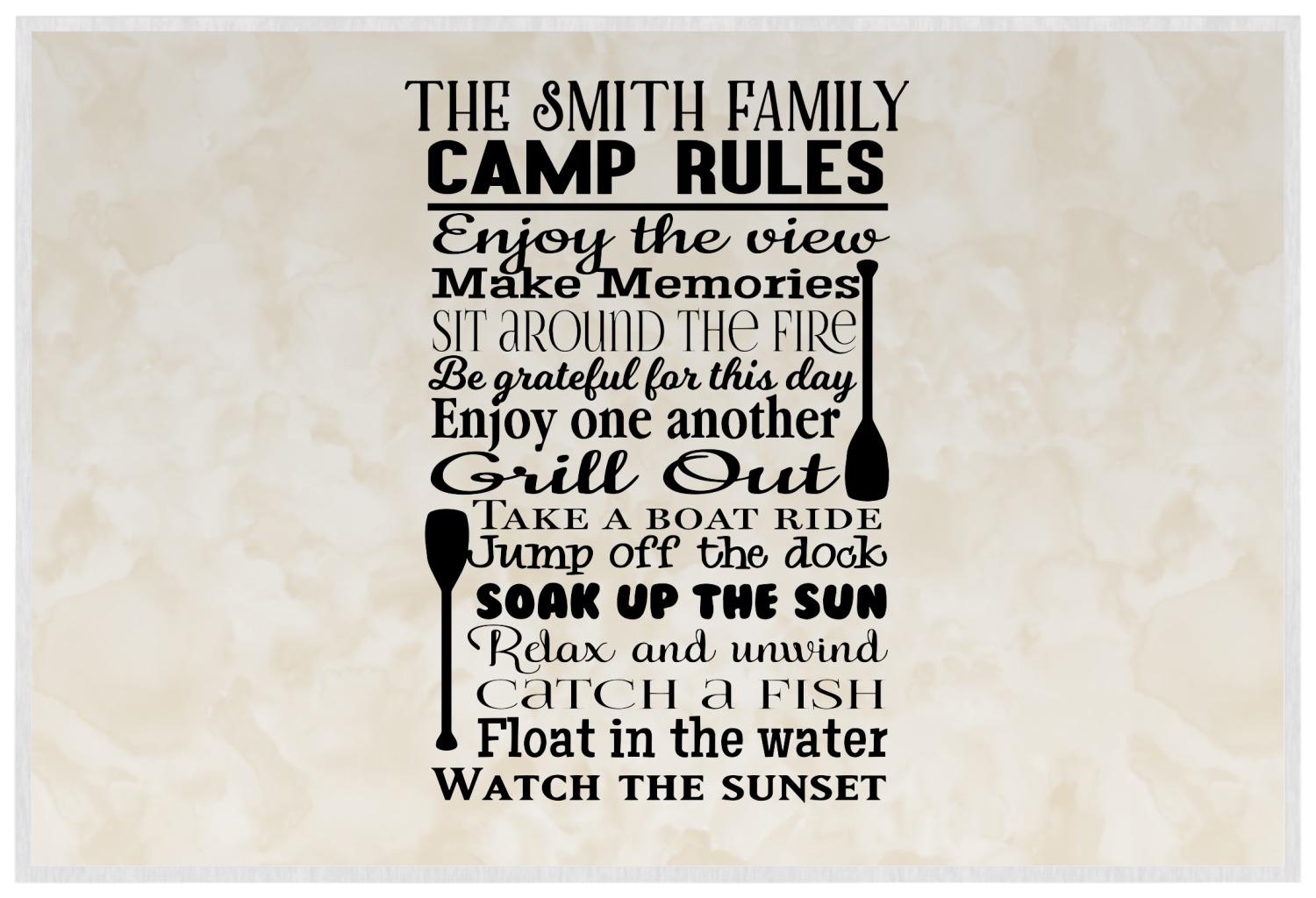This fun design is absolutely stunning. The background is a subtle tan watercolor texture. The main graphic is an adorable pink trailer camper with sweet flowers all around it. The phrase going above it says "Home is where you park it!" You can easily personalize the text to say the place and date of a specific camping trip you always want to remember.