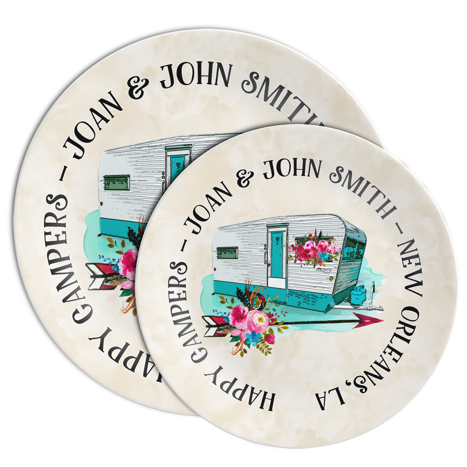 These personalized plates are free of BPA and break resistant, to survive the many drops of daily use. Your customization is displayed across the entire face of the plate, while the back of the plate remains white in color. We offer these plates in two different sizes: 8 inches and 10 inches in diameter.