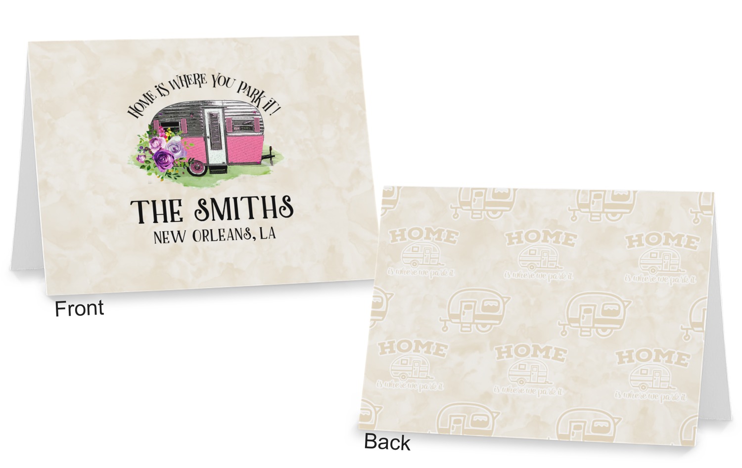 Our custom folded note cards are printed on premium 100lb. card stock and comes with white envelopes. The note card measure 5.5 by 4.25 inches and are blank on the inside for your handwritten message.