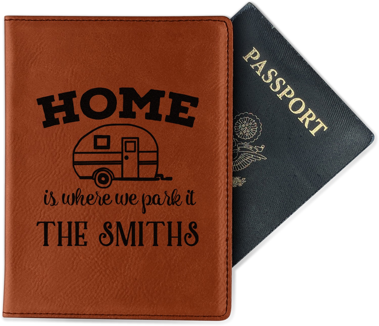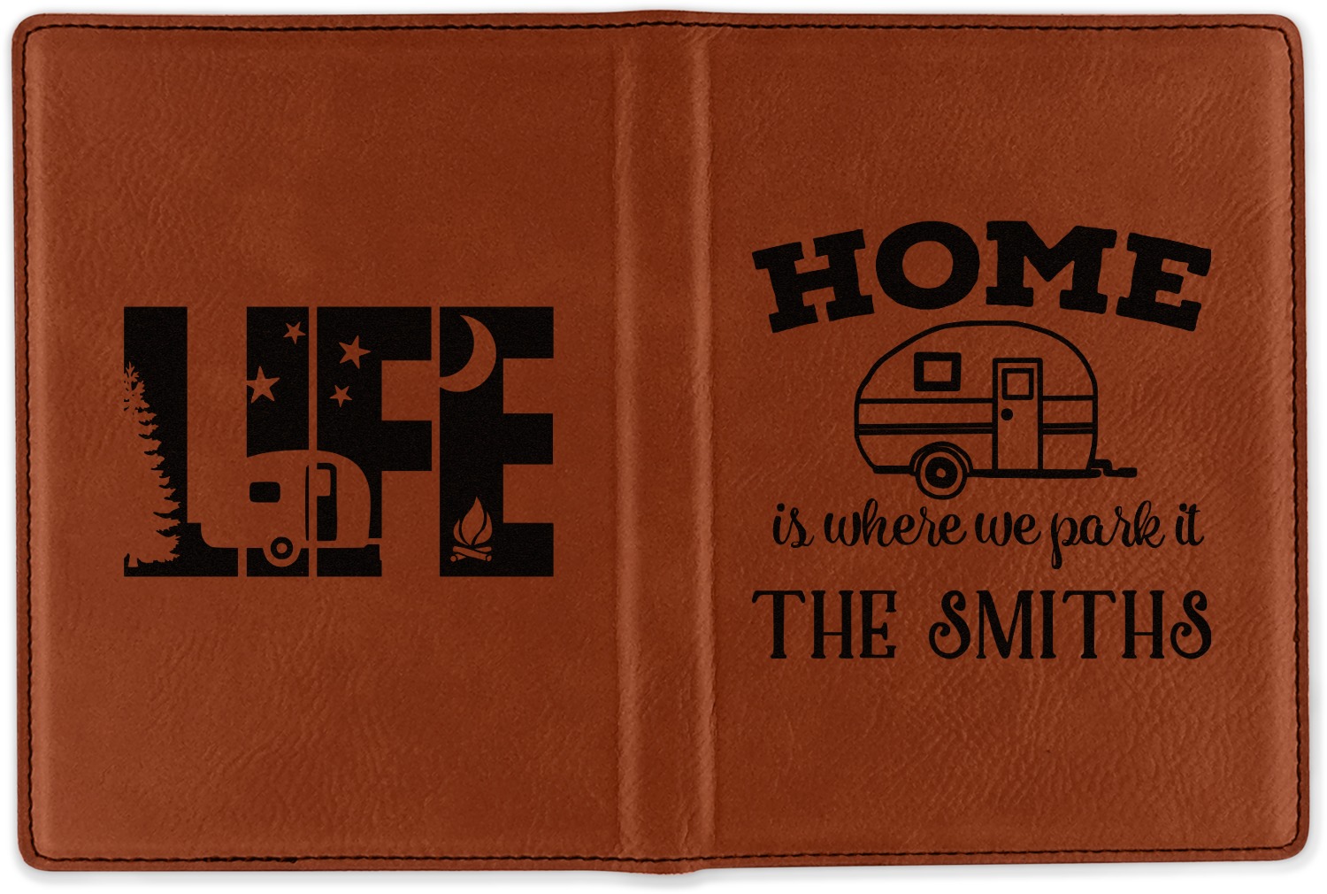 Although they are faux leather, these passport holders feel great in your hand. They are laser engraved either just on the front or the front and back. The image that is engraved onto your passport holder will be shades of black.