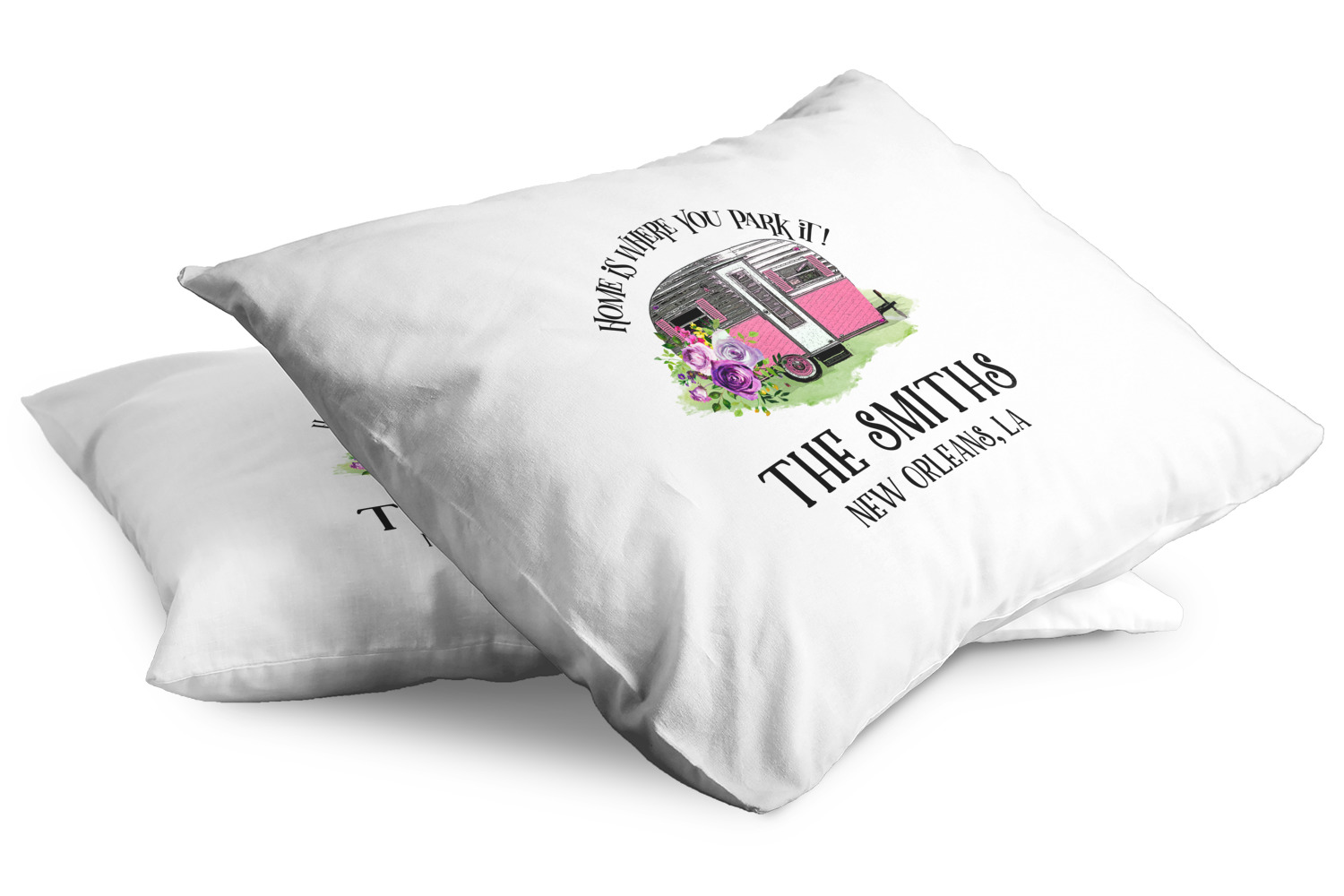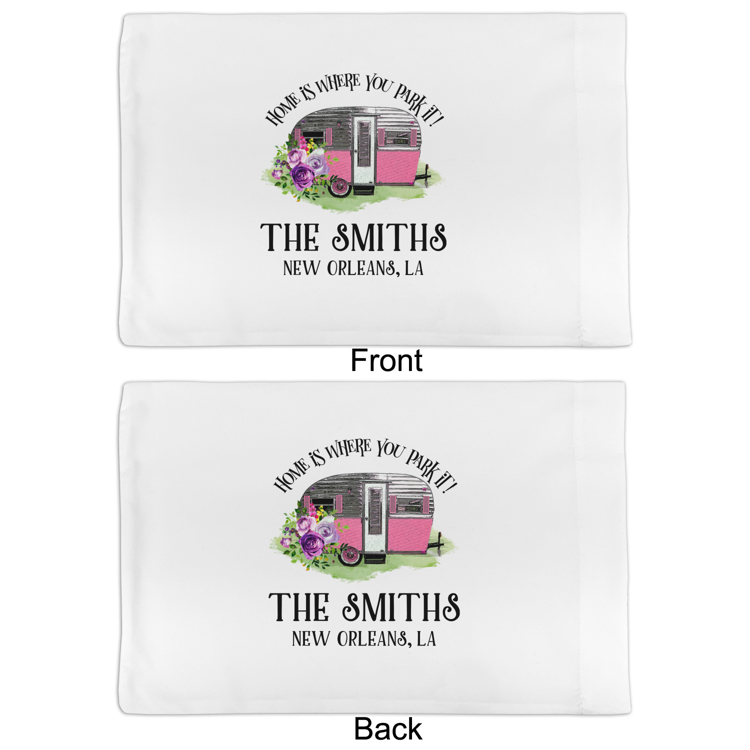 This fun design is absolutely stunning. The background is a subtle tan watercolor texture. The main graphic is an adorable pink trailer camper with sweet flowers all around it. The phrase going above it says "Home is where you park it!" You can easily personalize the text to say the place and date of a specific camping trip you always want to remember.