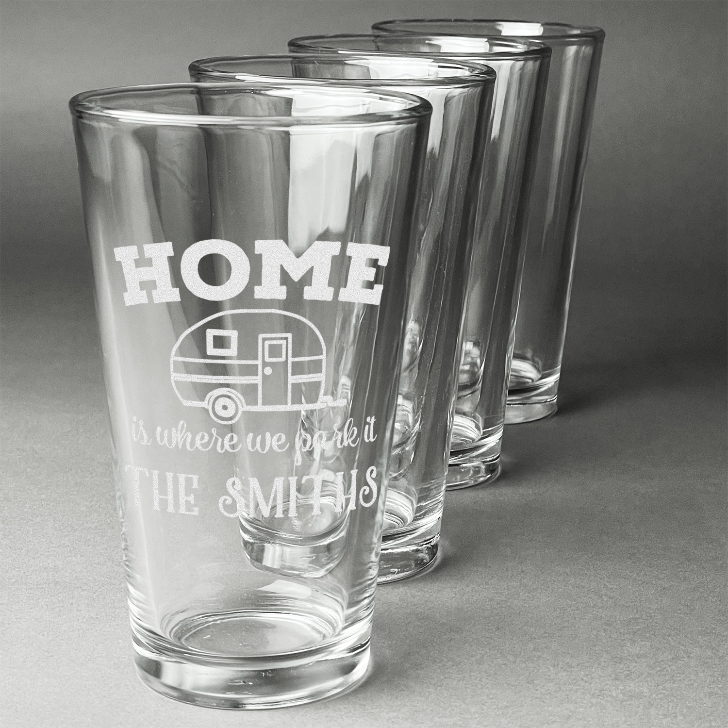 Available in a single glass or a set of 4 - each glass will be custom engraved with your design. Each glass holds 16 oz and measure 5.75"H x 3.5"W.