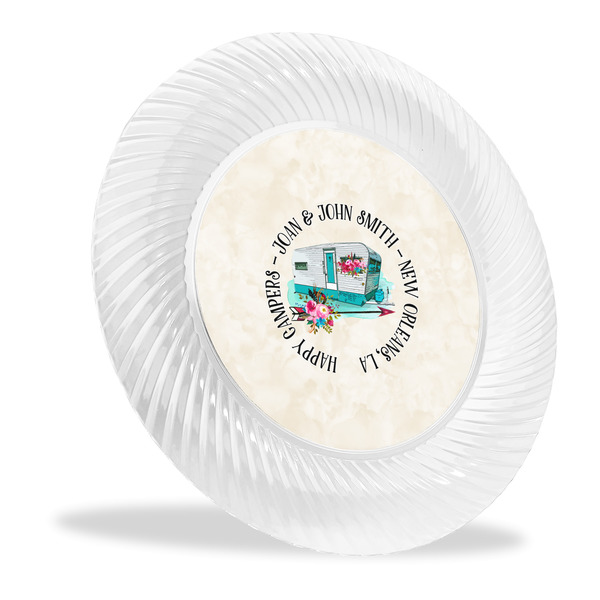 Made from a beautiful clear plastic plate as a base, your design is printed to the underside of the plate. The outside of these disposable plates has a classic swirl texture to it for a high quality look and feel.