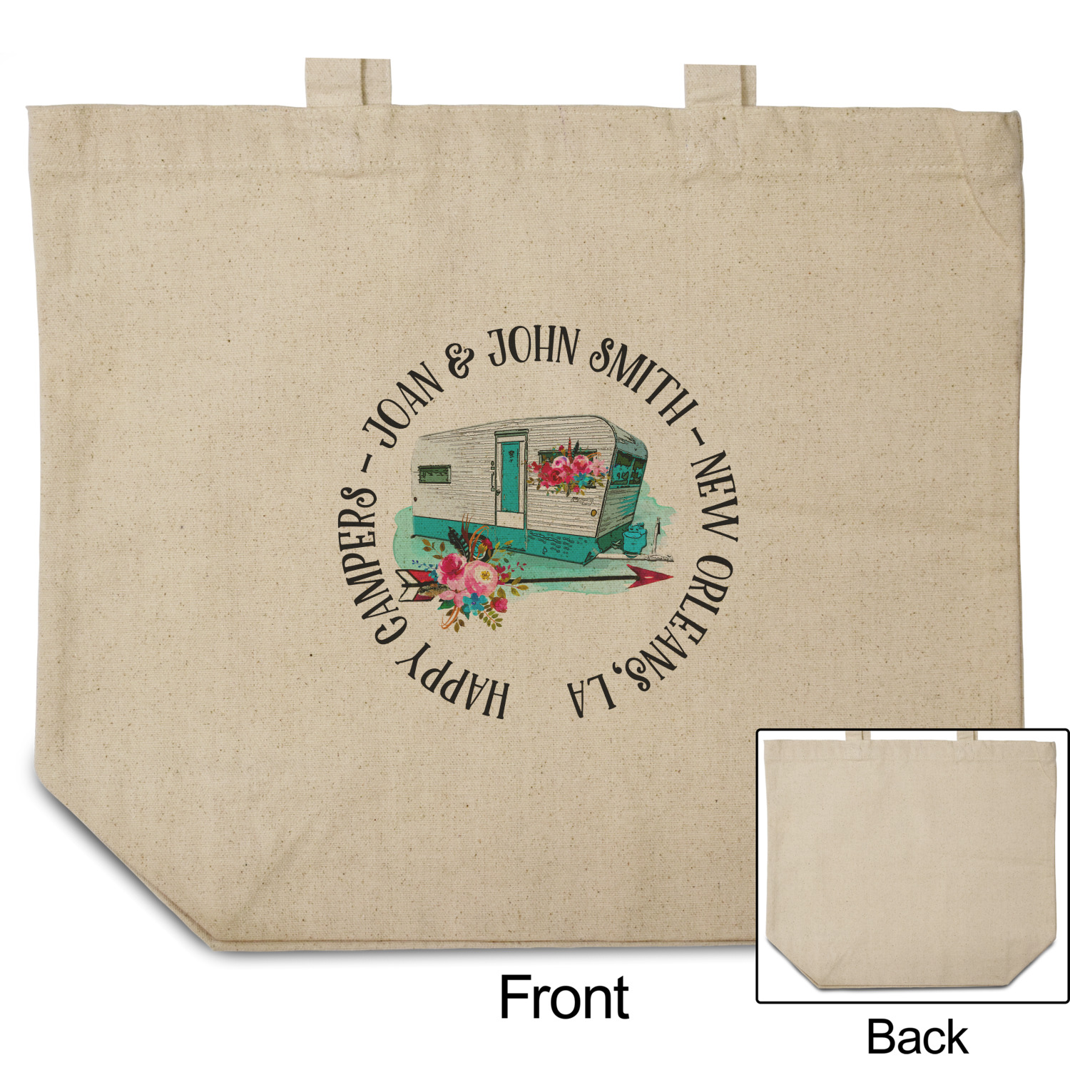 These cotton totes are washable and easy to care for, and they can be folded flat for storage. Your artwork, logo, or photo is printed in full color directly on the cotton tote in the front.