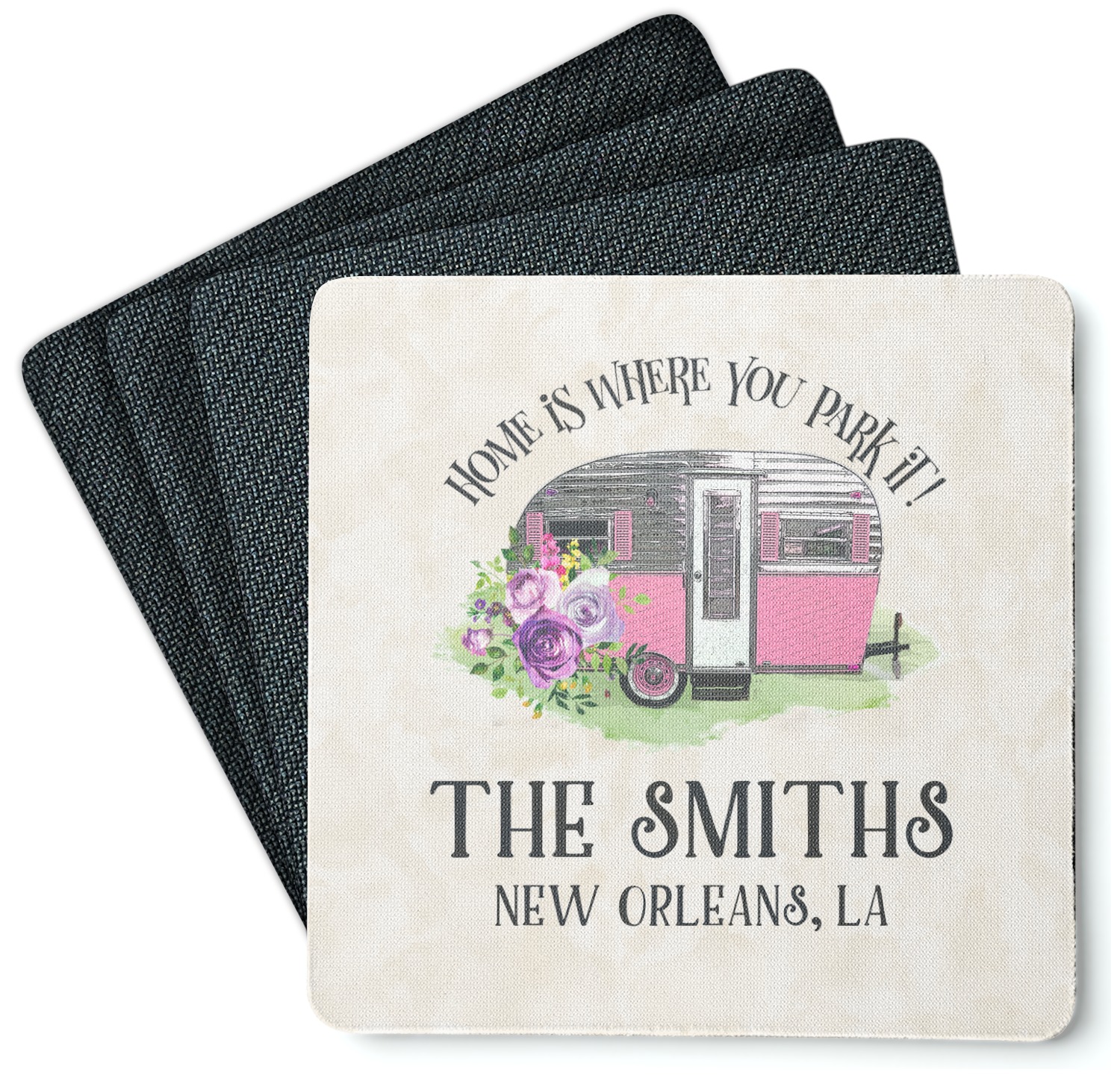 Replace your boring, run-of-the-mill coasters with a set of 4 personalized coasters! When personalized, these coasters will protect your beloved surfaces while adding to your home's decor! Thanks to your coasters bright colors and unique design, your guests will be eager to use them!