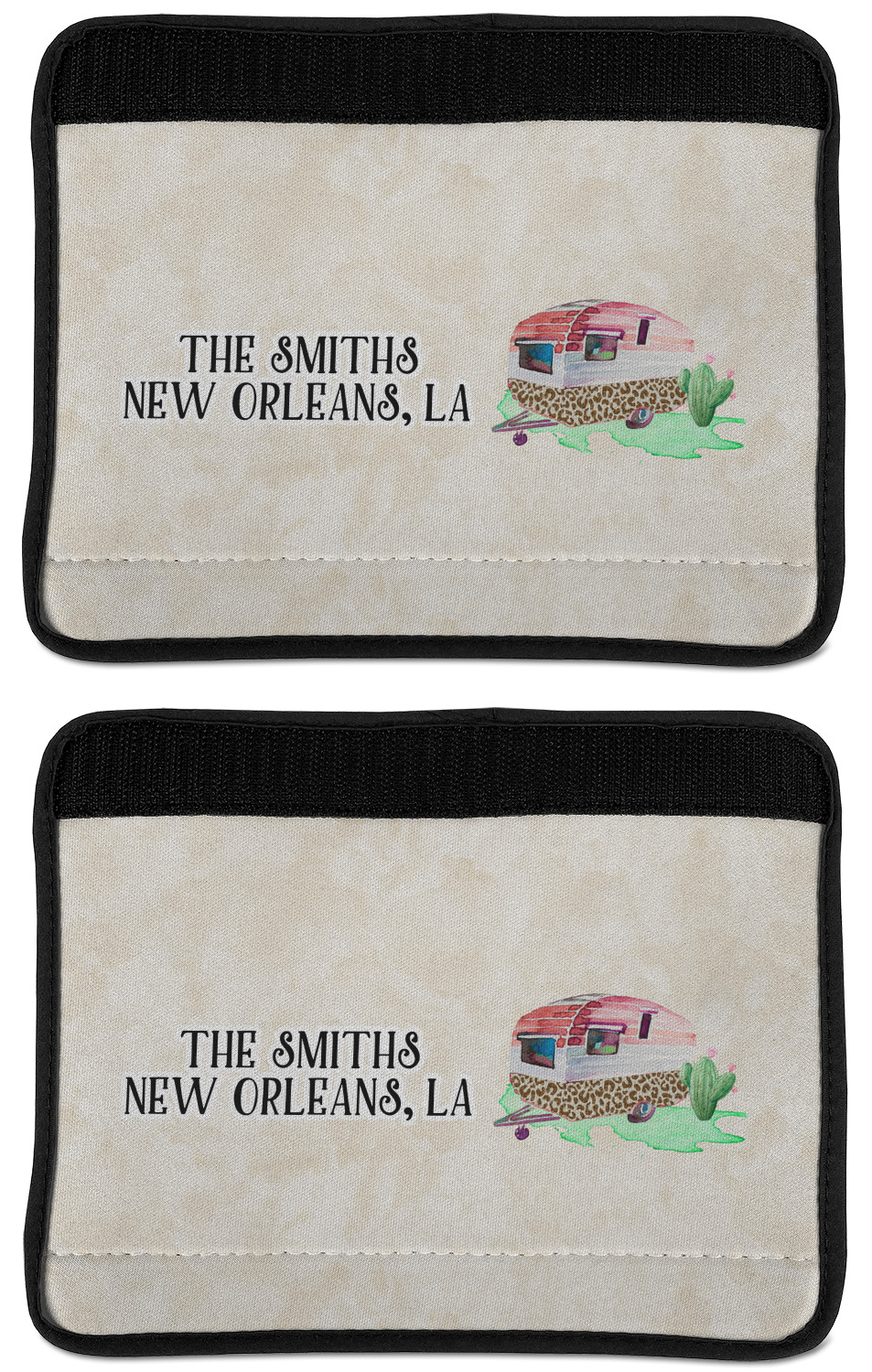 Made from neoprene, our seat belt strap covers wrap around the belt itself and have a Velcro tab for easy attachment and closure. The belt's edges are trimmed with a black polyester for a secure finish. Each cover is 9.5 by 7 inches when open and 9.5 by 2.5 inches when closed. We print your personalized design on the face of the seat belt pad.