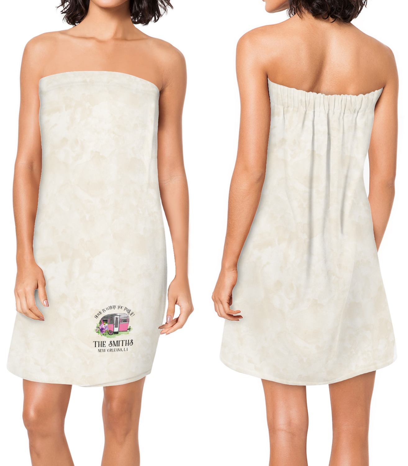 Step out of the shower, bath, or pool in style with one of our bath wraps! When customized, these spa wraps are perfect for a girls' spa weekend, a beach getaway, or a bachelorette spa party! Customize a few for yourself and for your home, or for your loved ones, as unique, yet useful, gifts!