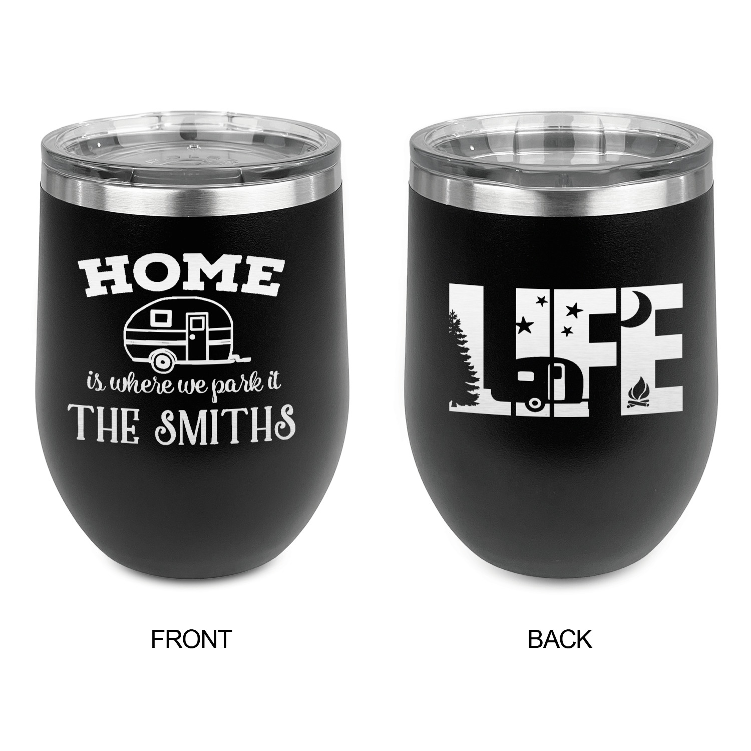 Design your wine tumbler with a cool graphic or quote. Even put your initials or monogram! These cups are laser engraved, which looks extra sharp on the metal tumbler.