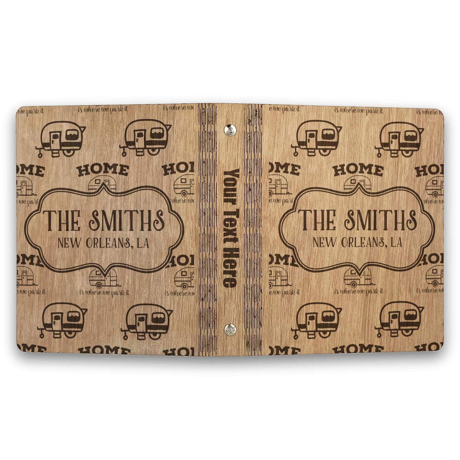 Made from premium hardwood, these are laser engraved then polished with wax to give a nice sheen and smooth feel to the product. The inside of the binders are finished with a faux leather material which is bonded to the inside of the wood to strengthen the wood and give the inside the same refined finish. The rustic brown and gold leather material adds a nice classic touch to the binders.