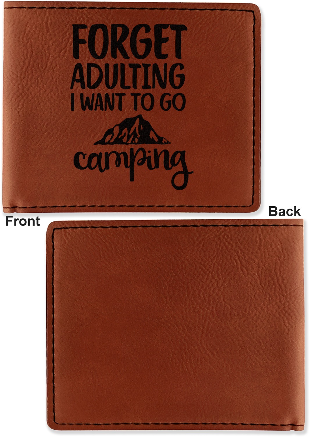 Your bifold wallet will be personalized by laser engraving, which will be a black color on the wallet. Choose a graphic, text, or monogram to personalize your wallet. There are thousands of choices in our design center.