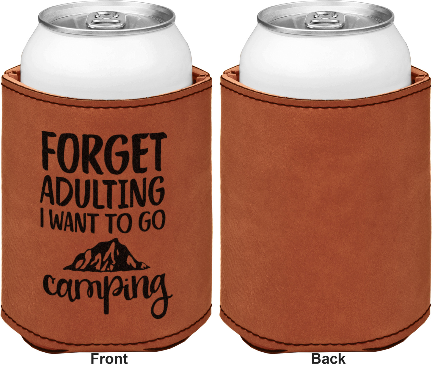 This can sleeve is made from a cognac-brown leatherette and stitched with a sturdy, black thread. A slim padding lines the inside of your can sleeve to allow for a better fit once your drink is inserted. The sleeve itself measures at 4 by 4.5 inches, allowing this custom can sleeve to accommodate most canned drinks. Your personalized design can be engraved on the front and back, or solely the front. When laser-engraved, your design appears as a black coloration which contrasts the leatherette nicely.