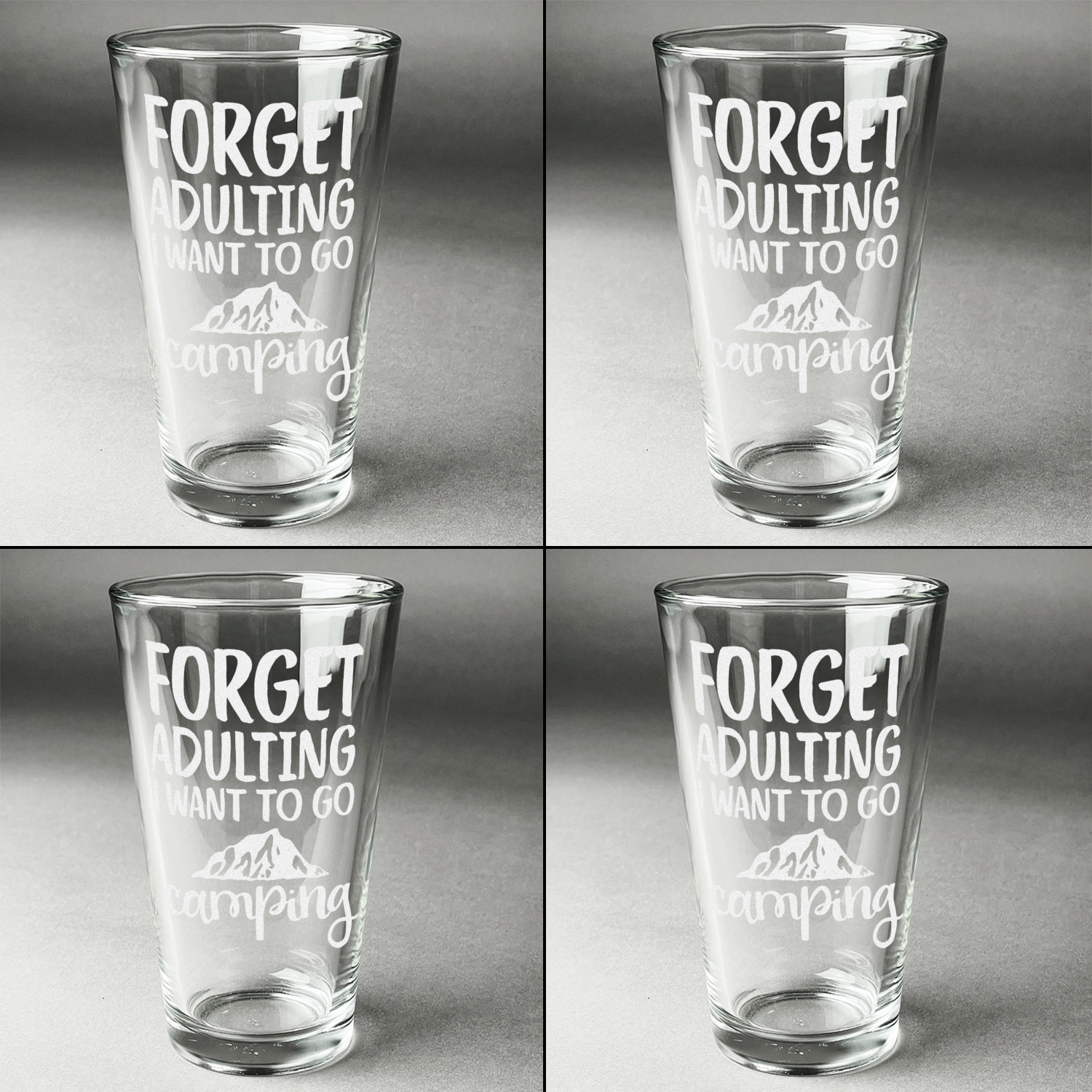 Available in a single glass or a set of 4 - each glass will be custom engraved with your design. Each glass holds 16 oz and measure 5.75"H x 3.5"W.