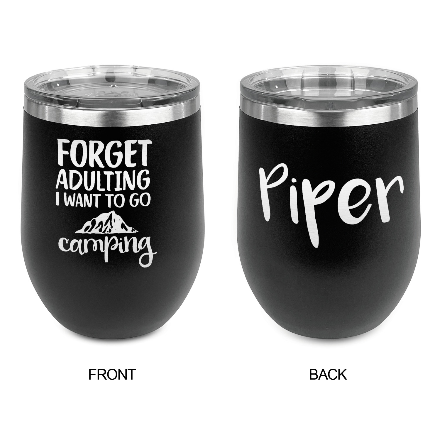 Design your wine tumbler with a cool graphic or quote. Even put your initials or monogram! These cups are laser engraved, which looks extra sharp on the metal tumbler.