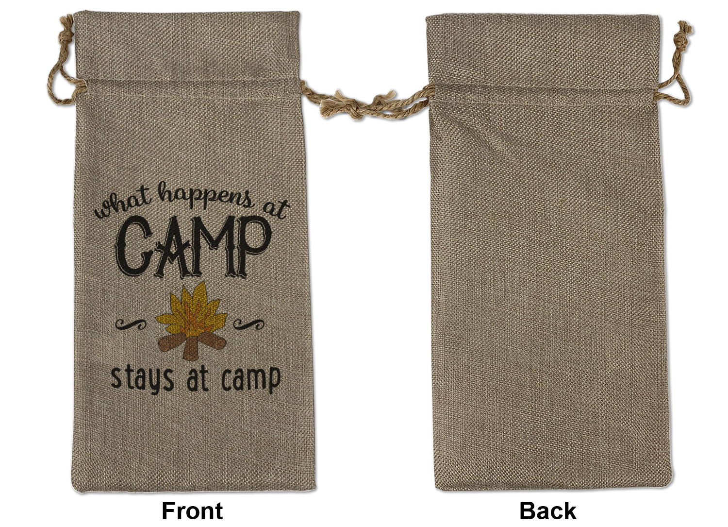 We sell our Burlap Gift Bags in 3 variant sized bags. Made with burlap polyester, each personalized bag can be secured with a twine drawstring pull. Your custom design is available to print on one side or both sides - completely up to you! The sizes of the bags measure approximately 4.5" x 6.5" for the smallest size, 6.5" x 8.0" for the medium size, and 6.5" x 13.5" for the large-sized bag.