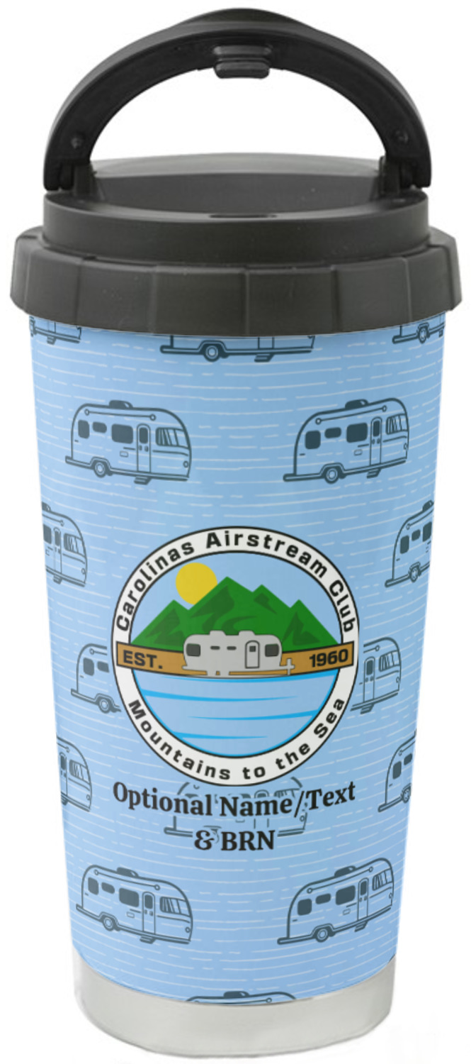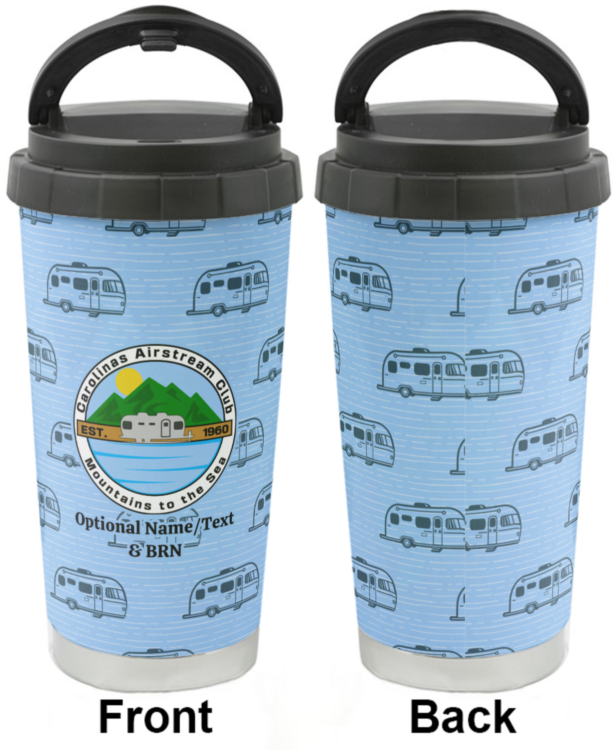 This sleek and tapered 16 oz stainless steel travel cup is a perfect fit in the hand. With the strip of visible stainless steel on the bottom, you'll be feeling classy!