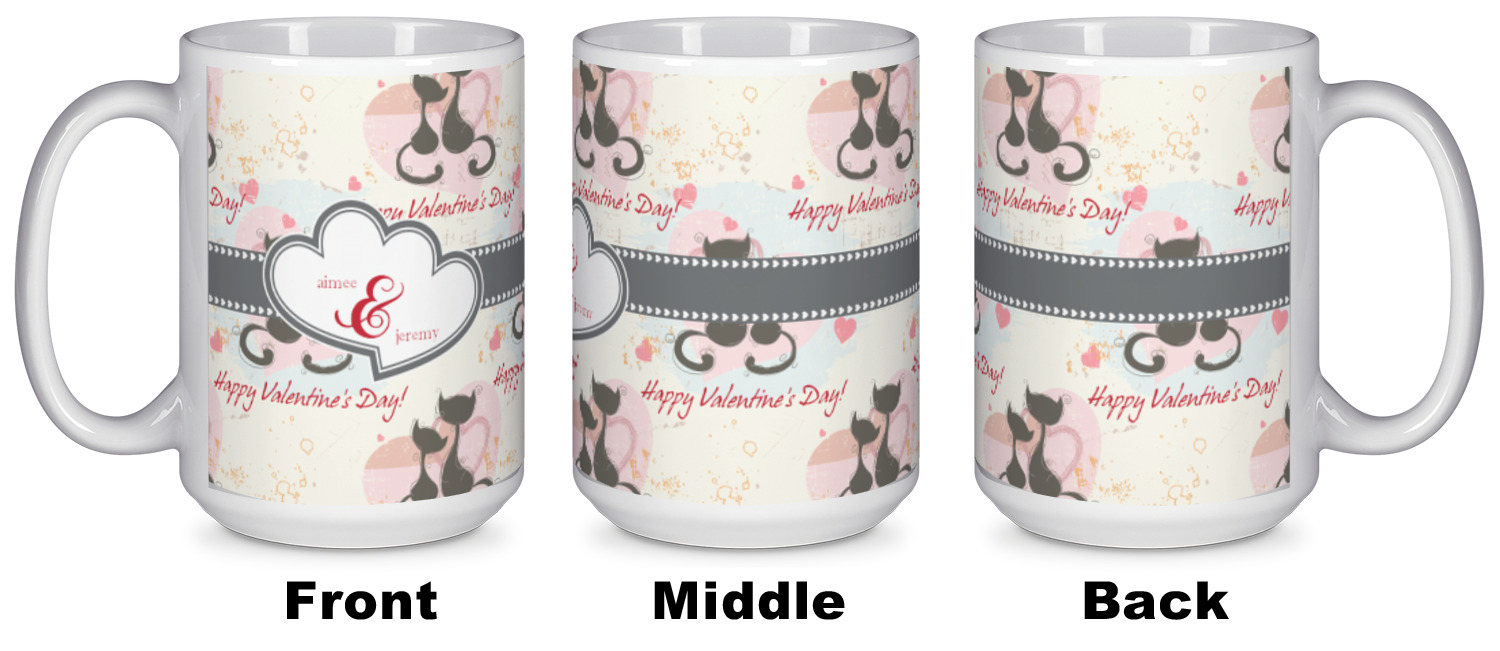 Our ceramic mugs have your design or photo printed along the surface with a gloss finish. The ceramic material of our mugs is dishwasher and microwave safe so you can reheat your tea or coffee if needed! We offer two different base colors with multiple mug sizes. The white ceramic mugs come in three size options - 11 oz., 15 oz., and 20 oz. Our black ceramic mugs are sold in either 11 oz. or 15 oz. sizes.